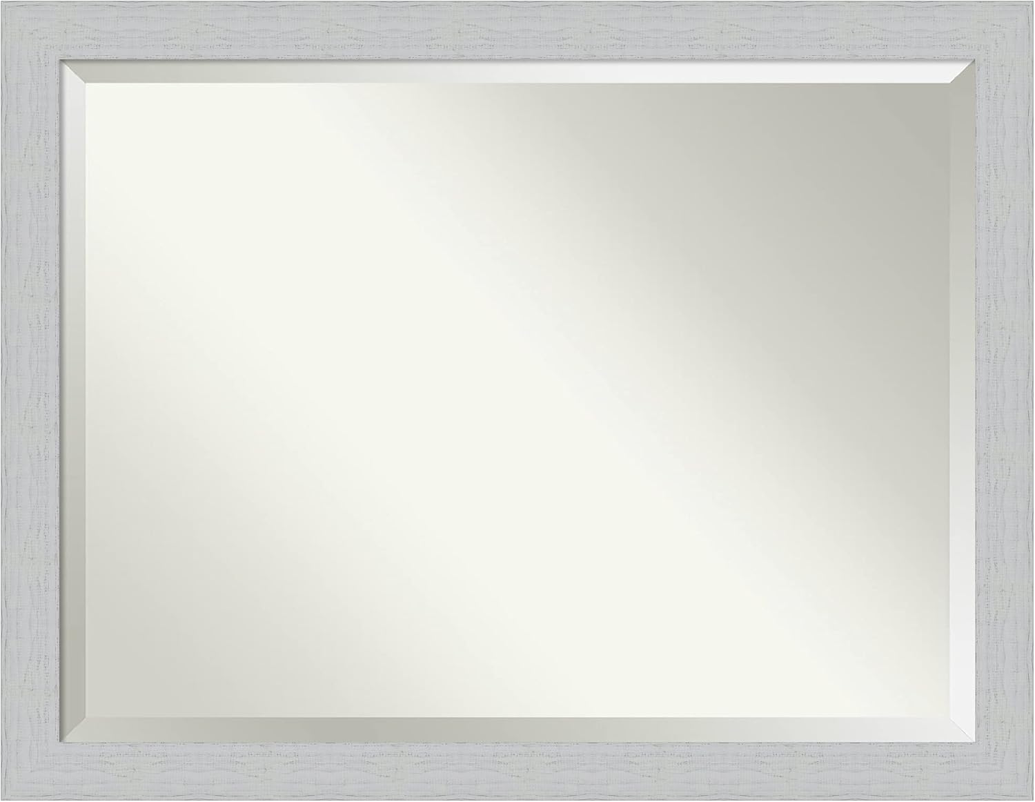 Amanti Art White Bathroom Mirror for Over Sink, 34x44 Shiplap White Rectangle Vanity Mirror, X-Large Coastal Wood Frame, Hangs Horizonally and Vertically, Bathroom Wall Decor, Beveled Edge from WI