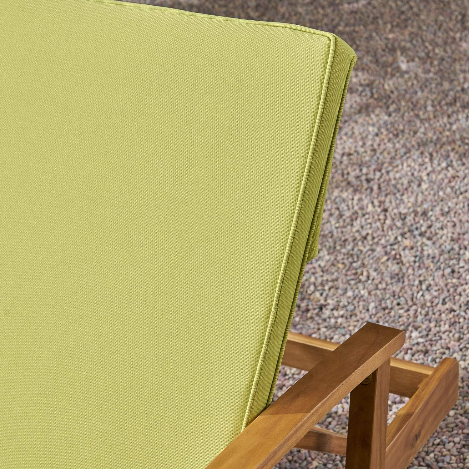 GDFStudio Samantha Double Chaise Lounge for Yard and Patio, Acacia Wood Frame, Teak Finish with Green Cushions, (307567)