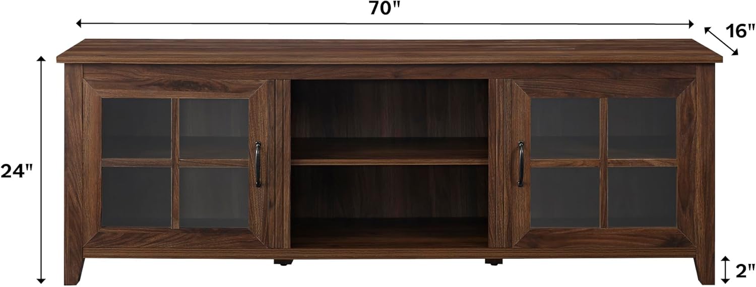 Walker Edison Portsmouth Classic 2 Glass Door TV Stand for TVs up to 80 Inches, 70 Inch, Dark Walnut