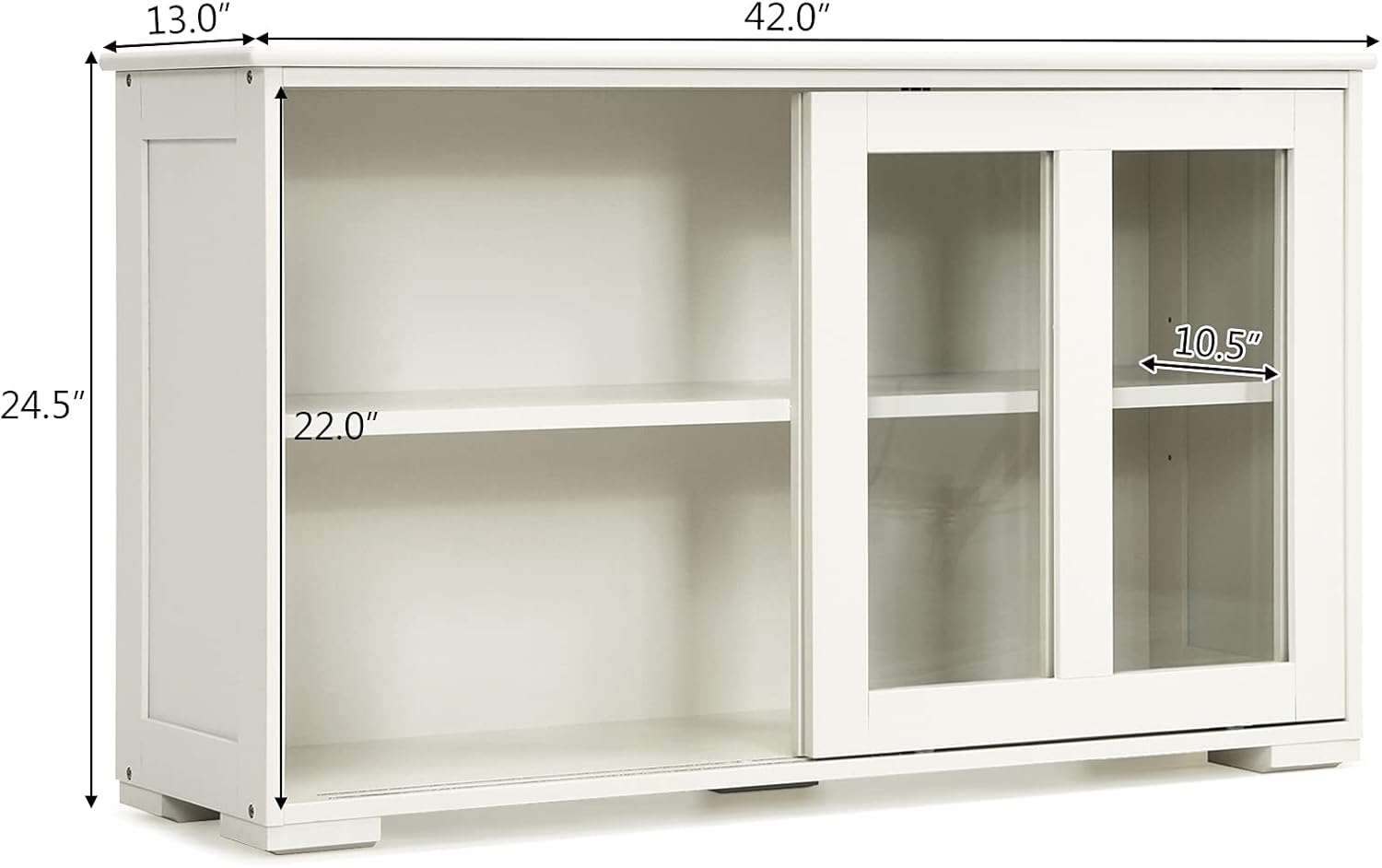 Costzon Sideboard Buffet Cabinet, Wooden Kitchen Storage Cabinet with Adjustable Shelf, Sliding Glass Doors, Accent Coffee Bar Cabinet Console Table for Living Room, Dining Room, Hallway (Cream White)