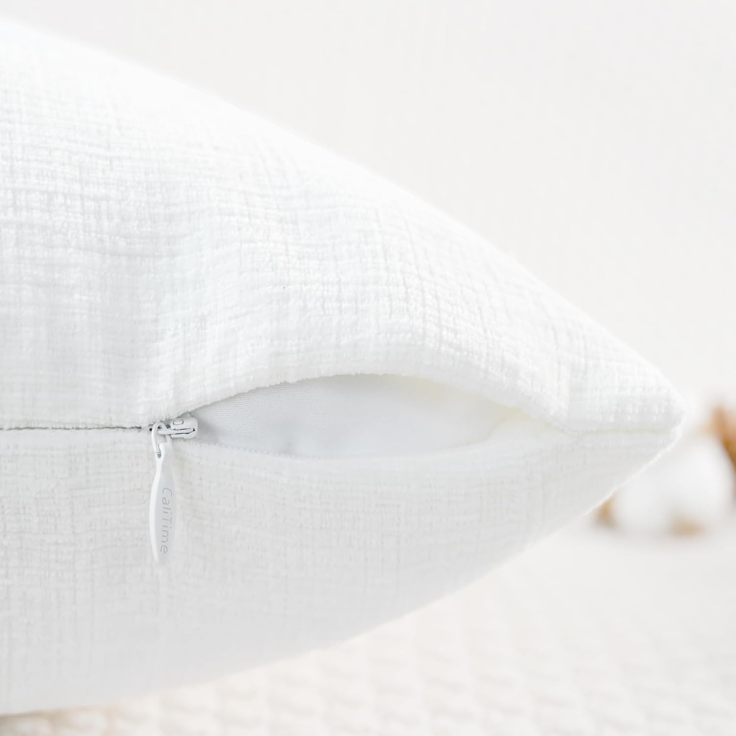 CaliTime Throw Pillow Covers Decorative 20 X 20 Inches Pack of 2 Cozy Chenille Cushion Cases for Couch Sofa Bed Living Room Home True White