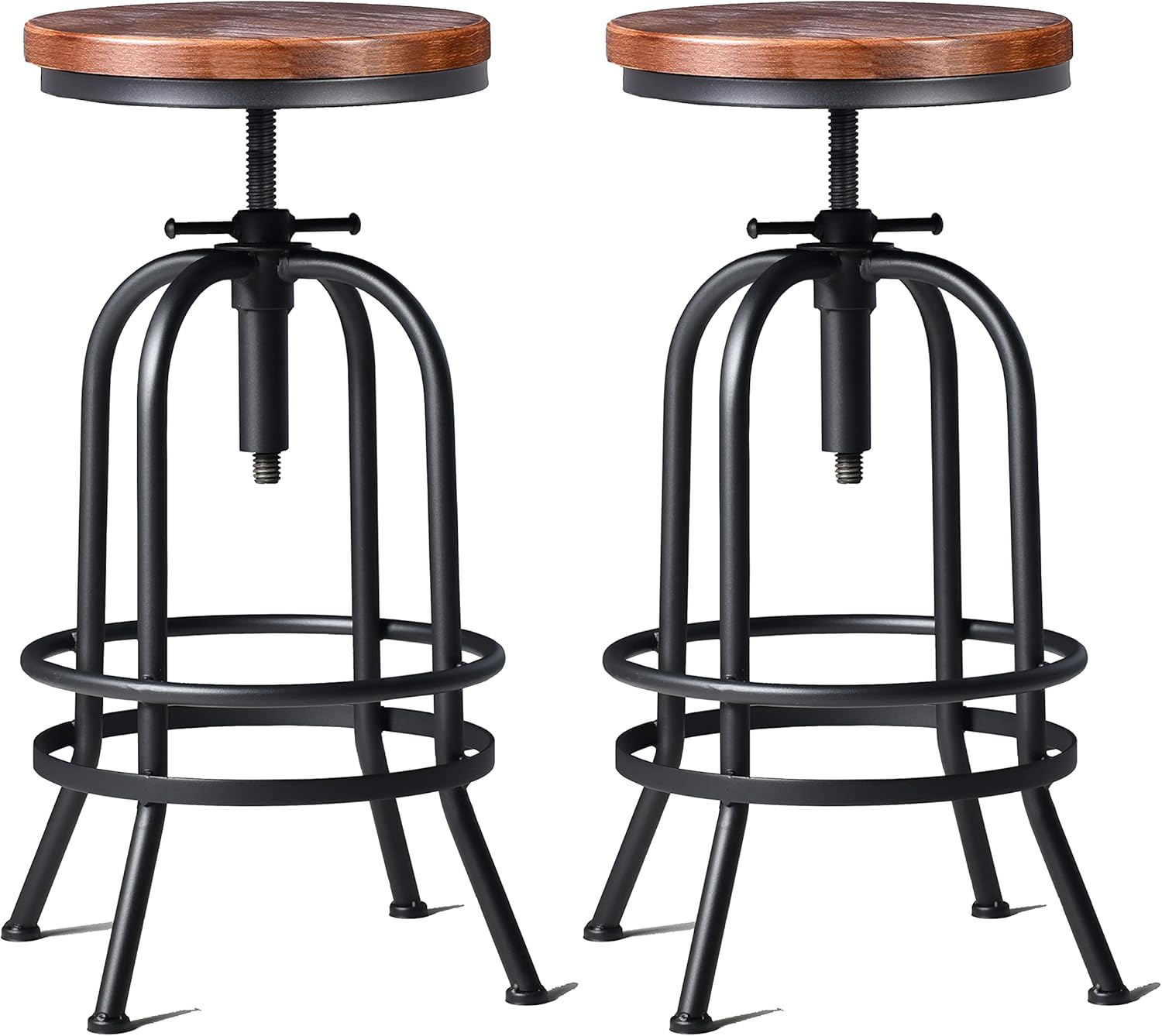 32 inch Vintage Industrial Bar Stool-Metal Wood Swivel Bar Stool-Retro Bar Height Stool-Counter Height Adjustable Kitchen Stools-Set of 2-Extra Tall Pub Height 26-32 Inch,Fully Welded(Black(2pcs))