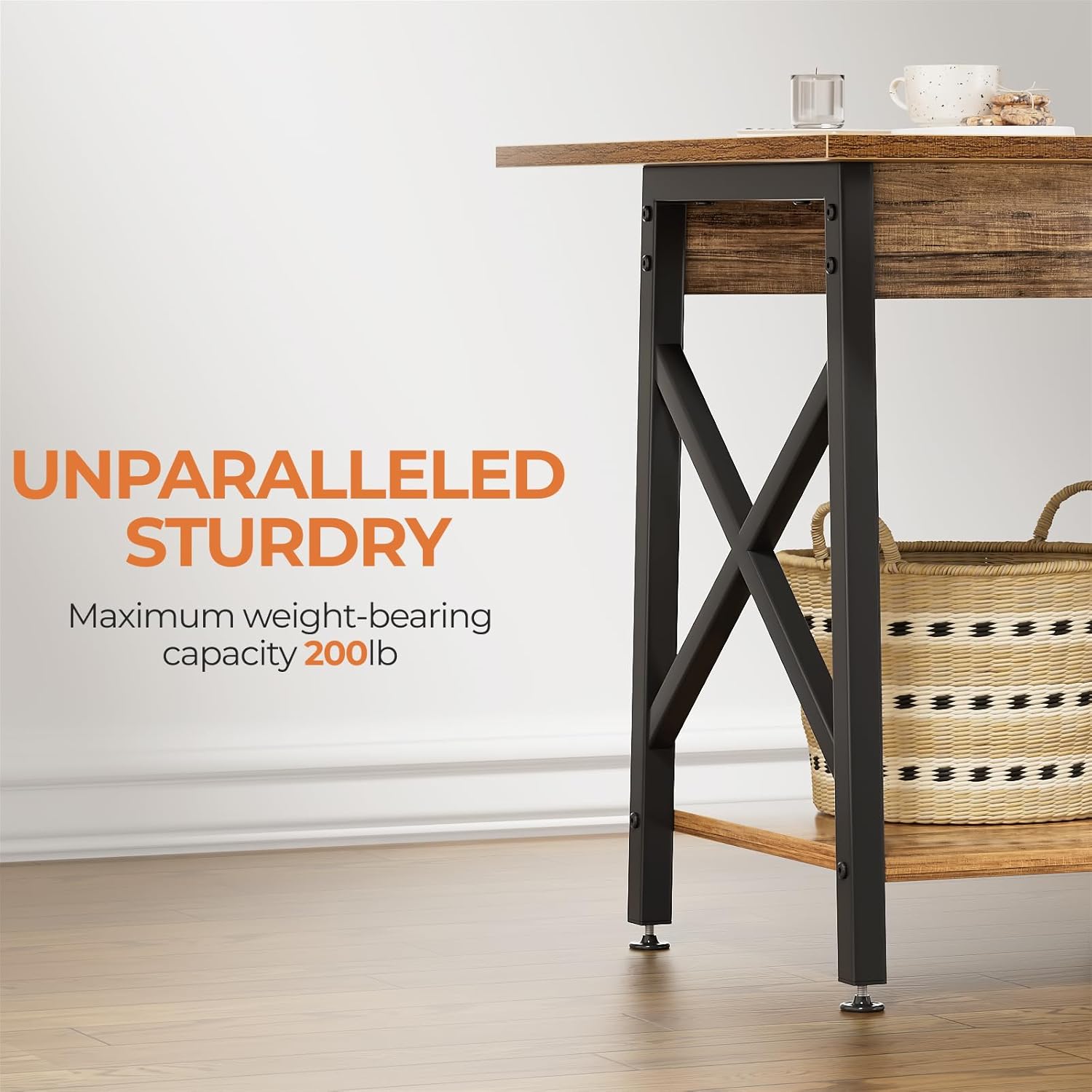 GreenForest End Table 24 inch for Living Room, Large Square Side Tables with X-Frame, Tall Industrial Bedside Nightstand with 2-Tier Storage, Rustic Walnut