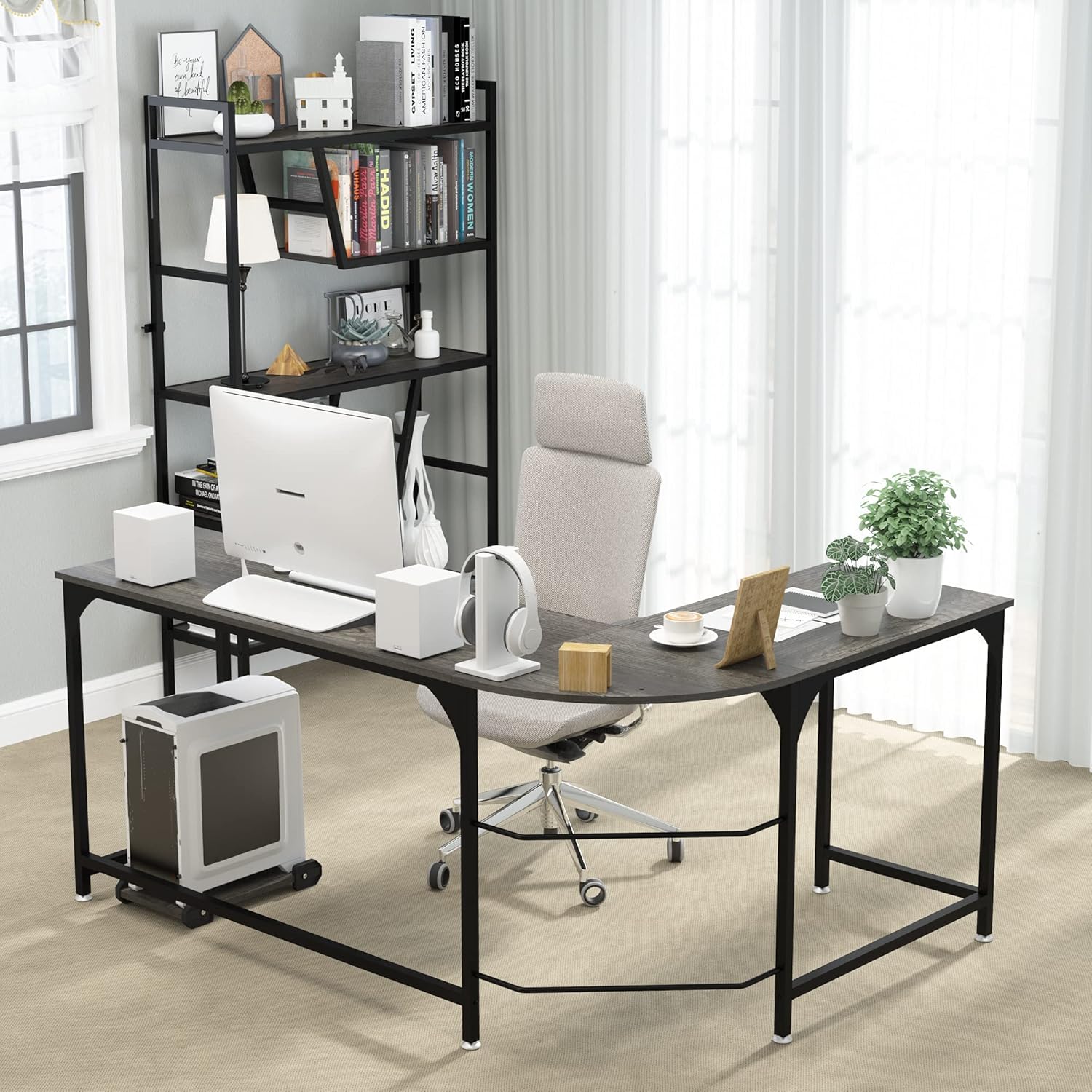 - L-Shaped Corner Design: L-shaped desk has enough space for monitors and laptops, maximize and create the ideal workspace, it also comes with a free CPU stand that places freely underneath.