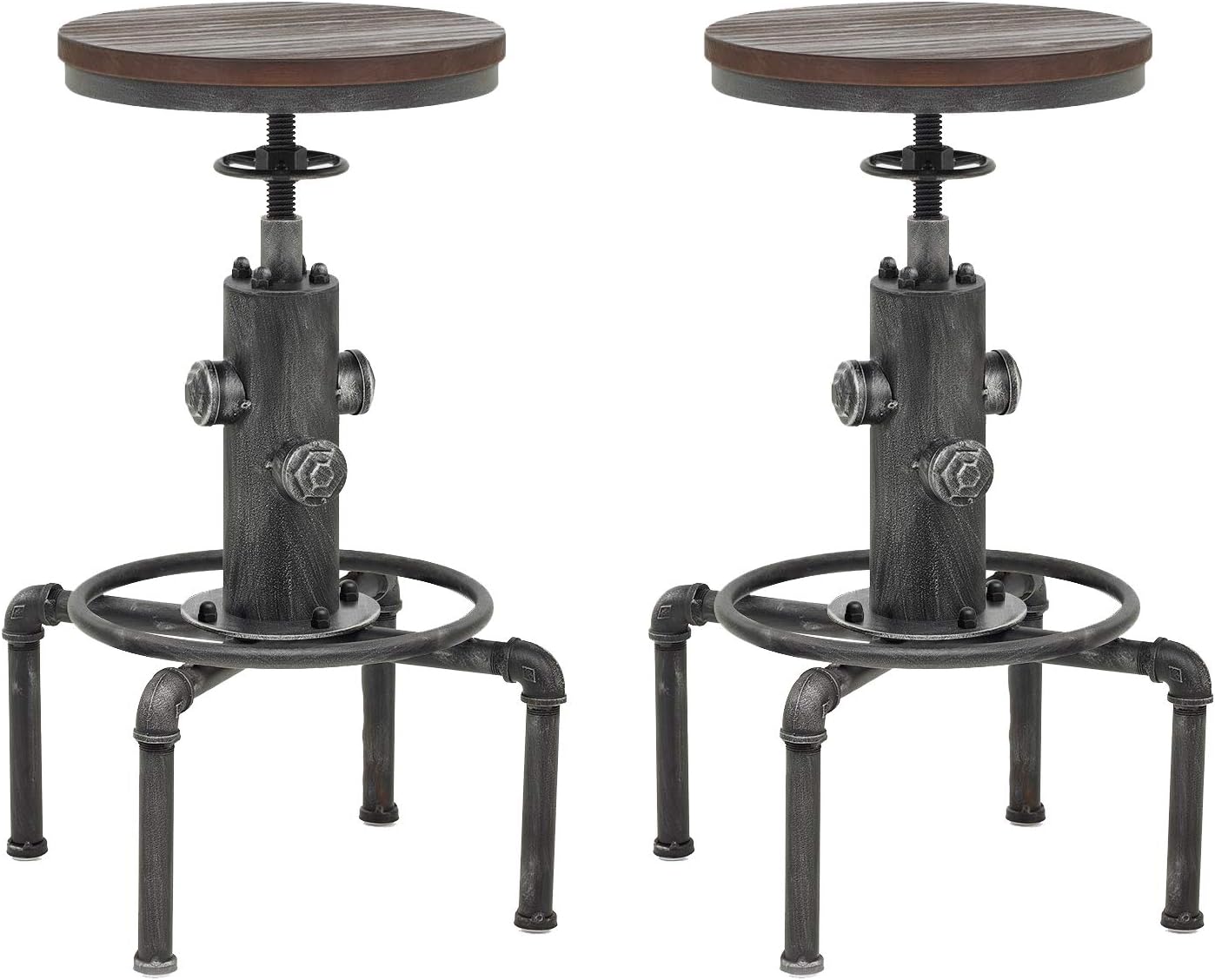 Topower Antique Vintage Industrial Barstool Solid Wood Water Pipe Fire Hydrant Design Cafe Coffee Industrial Bar Stool Set of 2 Silver