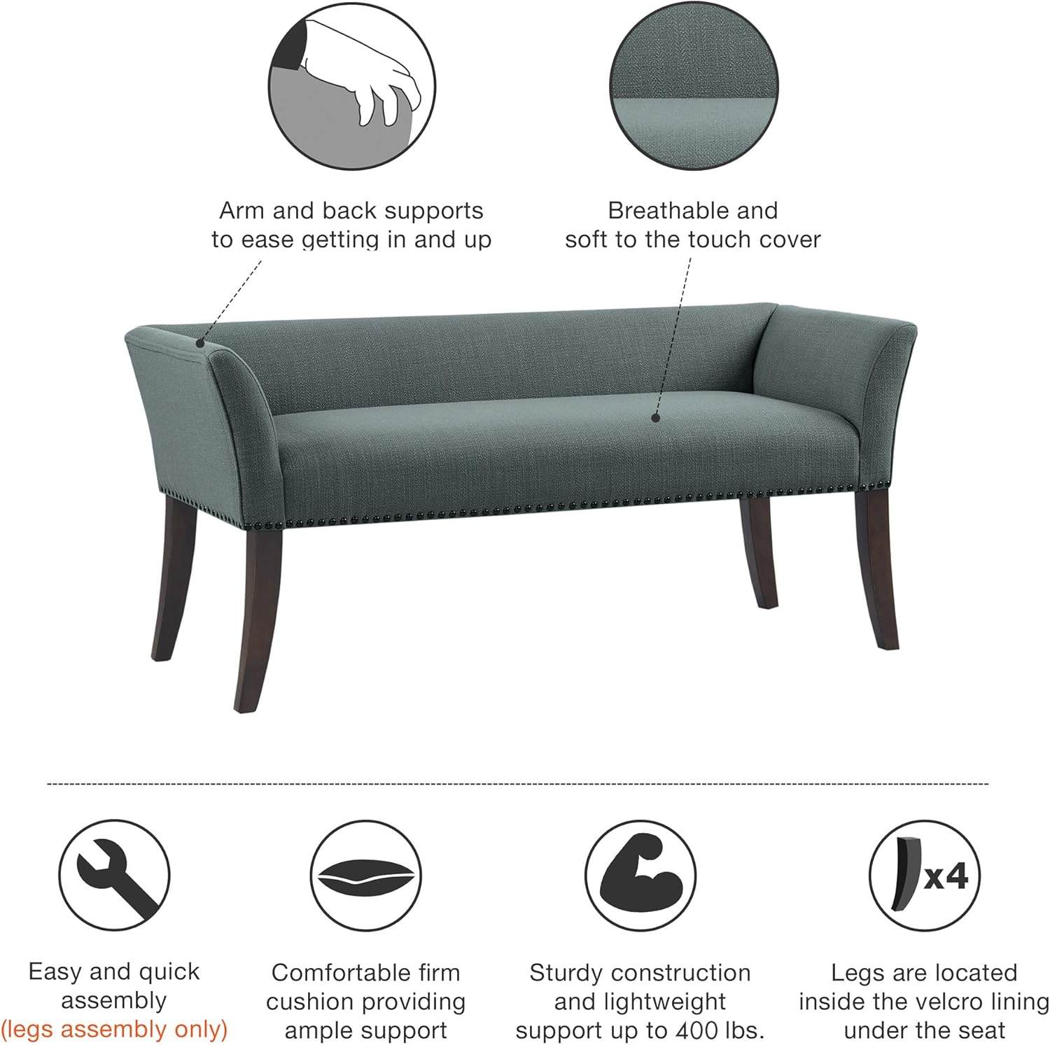 Madison Park Accent Bench, Upholstered with Nailhead Trim, & Padded Seat Entryway Bench Small, End of Bed Bench with Back, 49.5" W x 19.25" D x 23" H, Slate Blue
