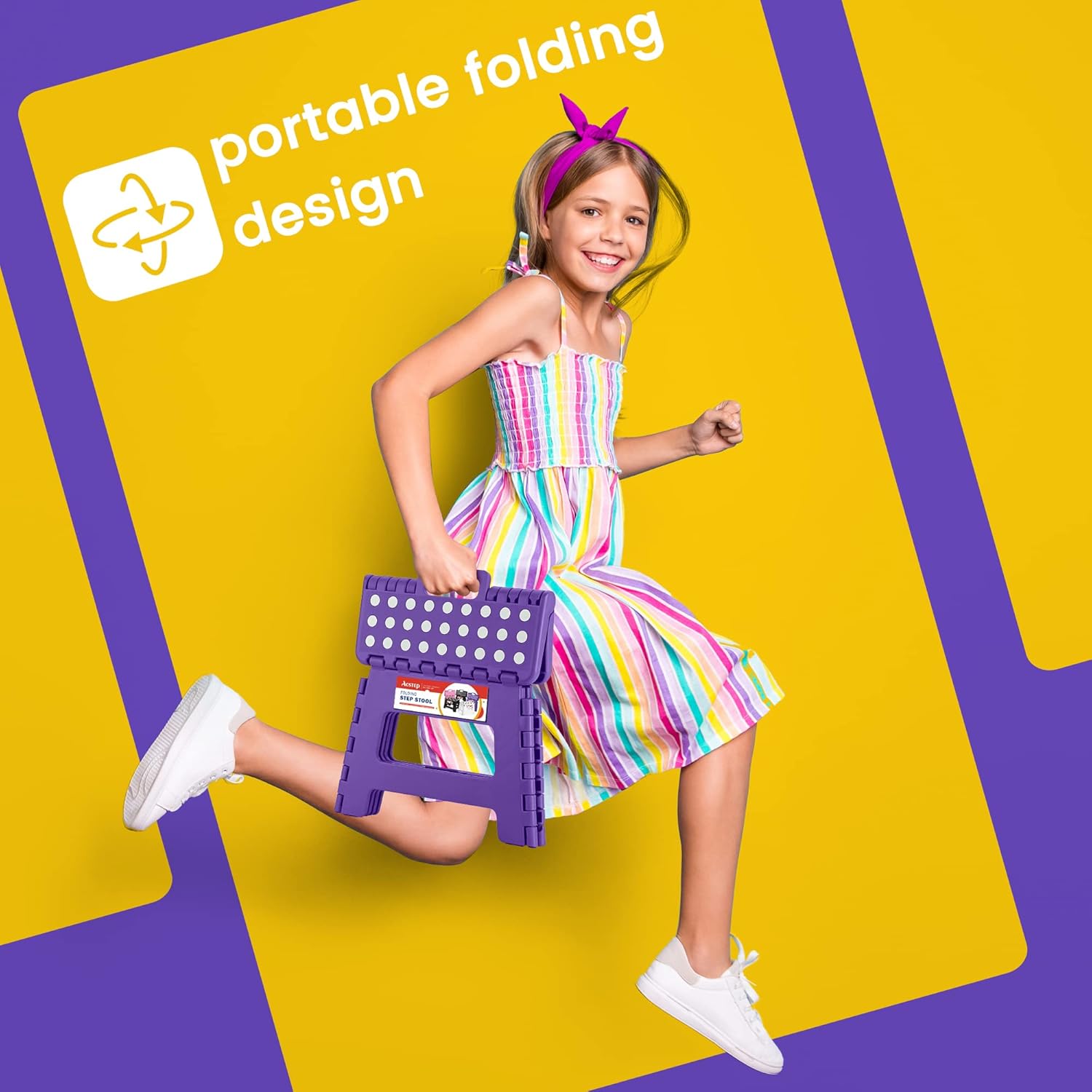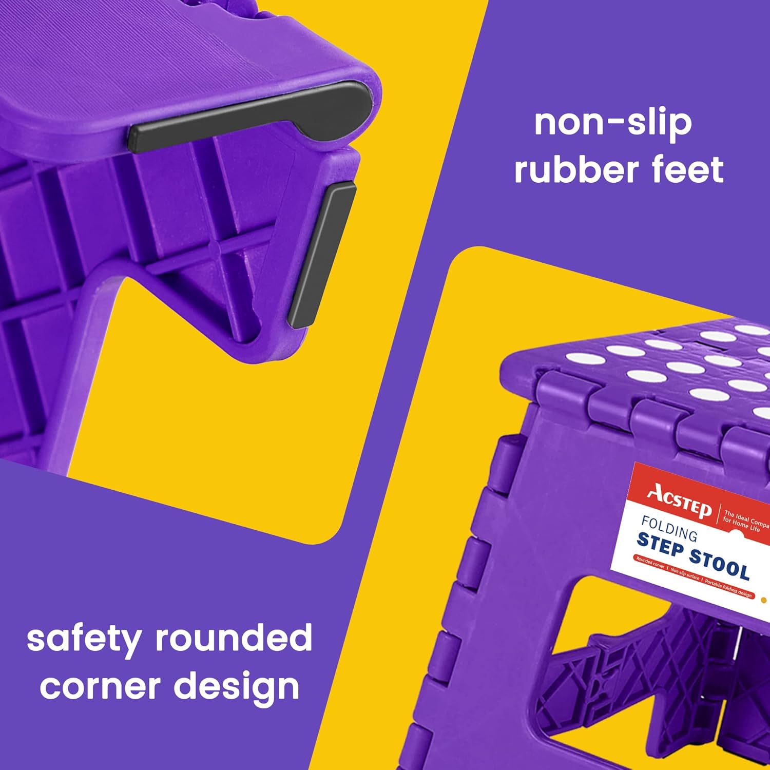 ACSTEP Folding Portable Collapsible Plastic Foldable Step Stool,Non Slip Folding Stools for Kitchen Bathroom Bedroom (Purple)