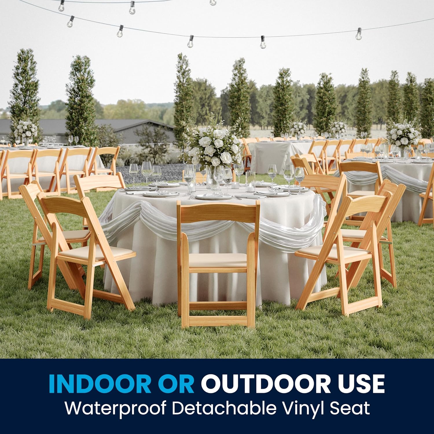 - Host events year-round with this special events wood folding chair for indoor and outdoor use. Whether you're a professional party planner or just need extra seating at home, upgrading to this premier wood folding chair is a great choice.