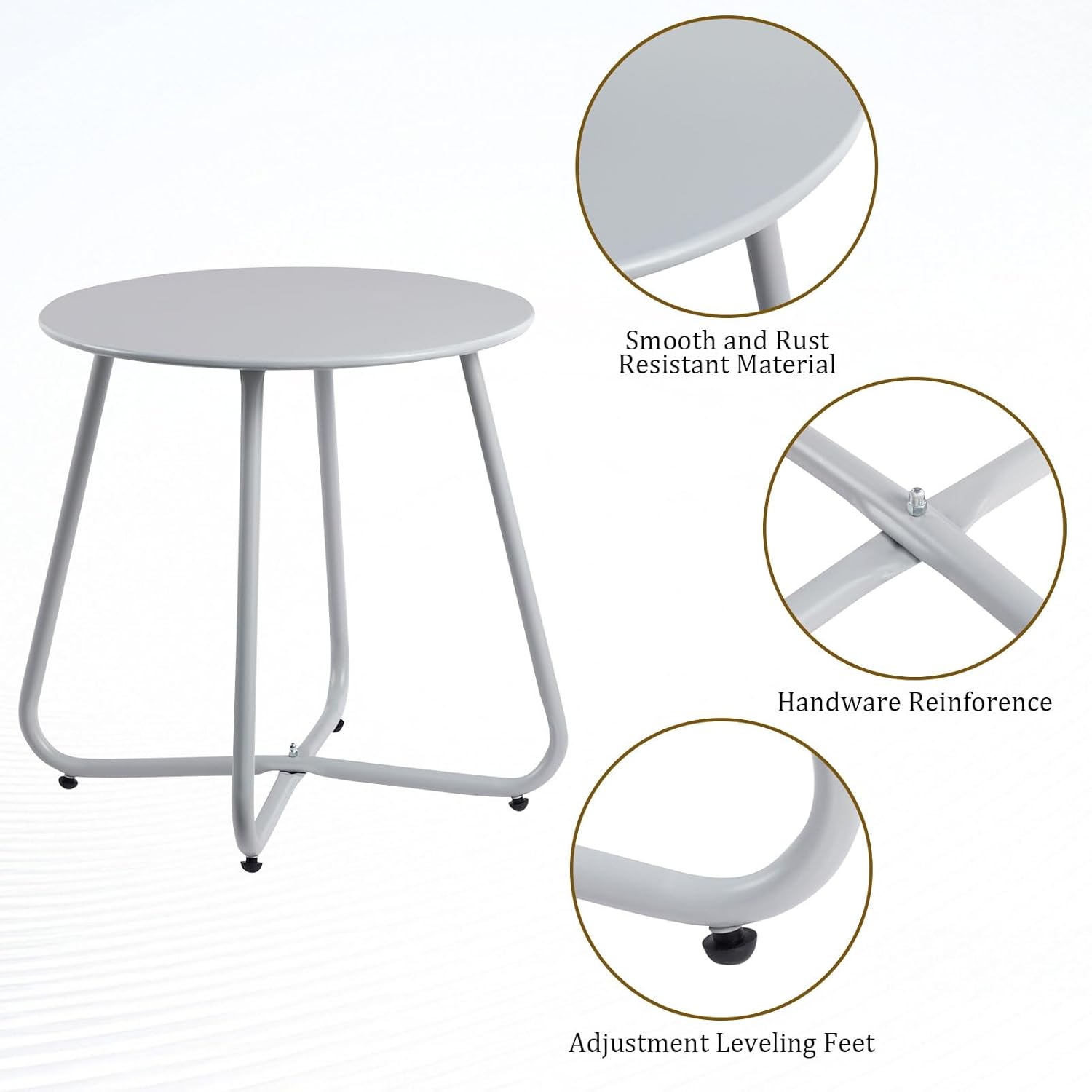 HollyHOME Round Metal Side Table, Rust-Resistant Patio Small Plant Stand, Outdoor 17.32'' Portable End Table for Balconies, Gardens, Living Rooms and Bedrooms, Grey