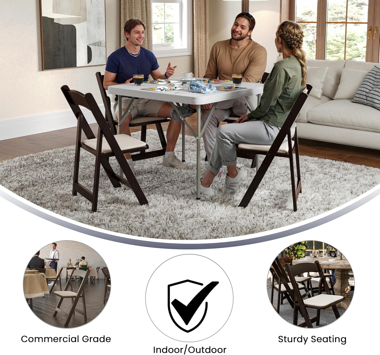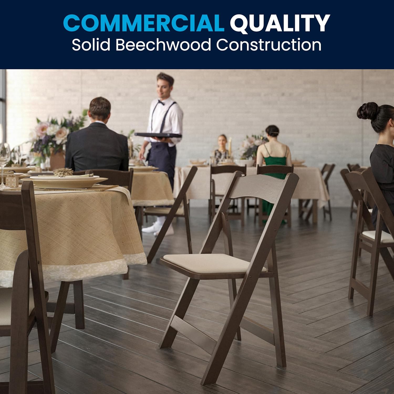 - Host events year-round with this special events wood folding chair for indoor and outdoor use. Whether you're a professional party planner or just need extra seating at home, upgrading to this premier wood folding chair is a great choice.