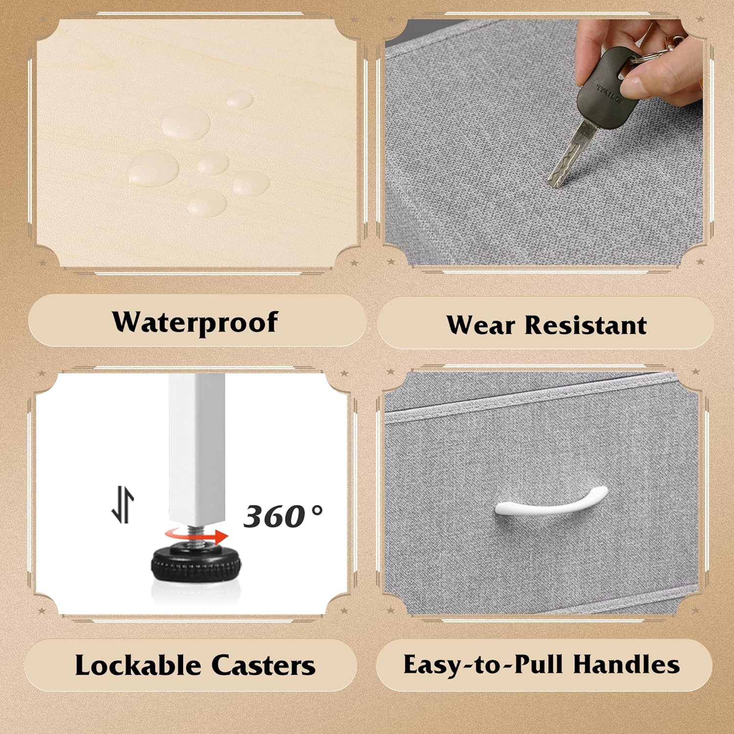 - š¦š§šØš„šš¬ š¦š§š„šØšš§šØš„š:Strong steel frame and water-resistant wood top offer stable support and ensure years of use; High-quality non-woven fabric drawers is easy to clean.