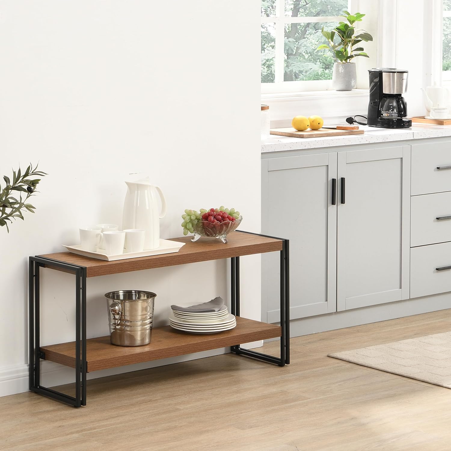 2 Shelf Bookcase Small Display Book Shelf Rustic Industrial, Brown