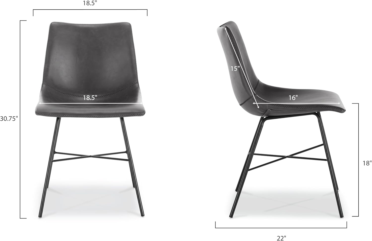 - Steel base and legs with dark charcoal gray powder coating