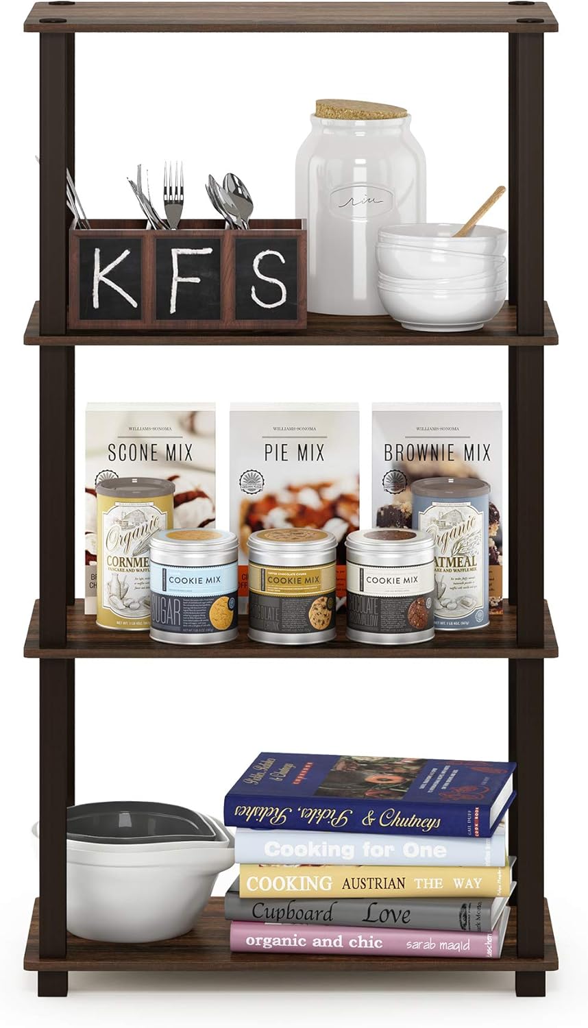 Furinno Turn-N-Tube 4-Tier Multipurpose Shelf Display Rack, Square Tube, Walnut/Brown