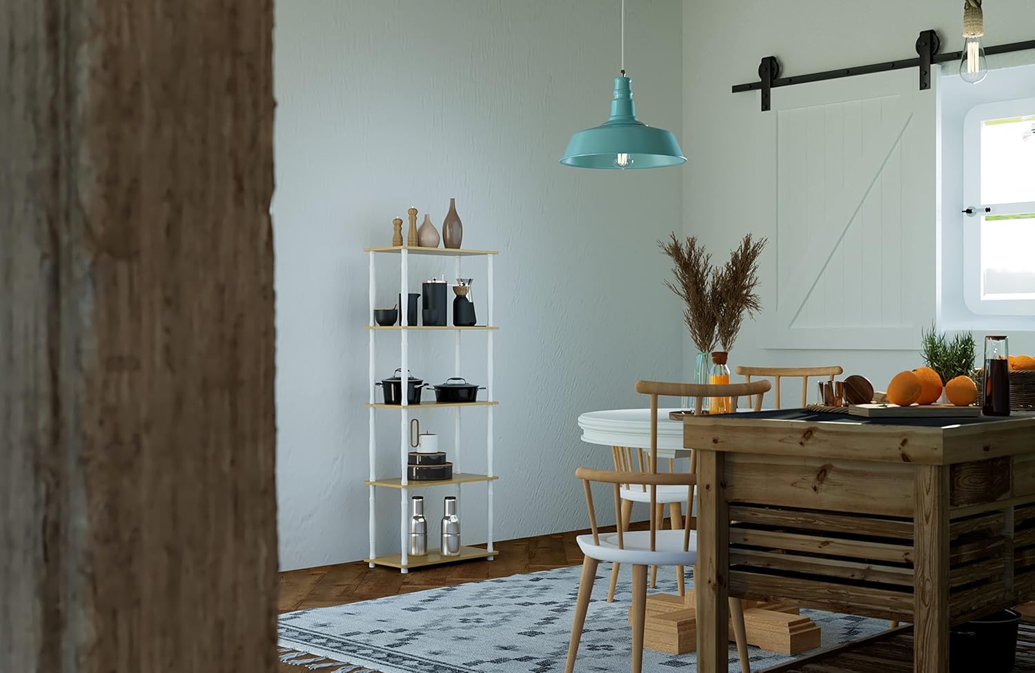 Furinno Turn-N-Tube 5-Tier Multipurpose Shelf / Display Rack / Storage Shelf / Bookshelf, Classic Tubes, Beech/White
