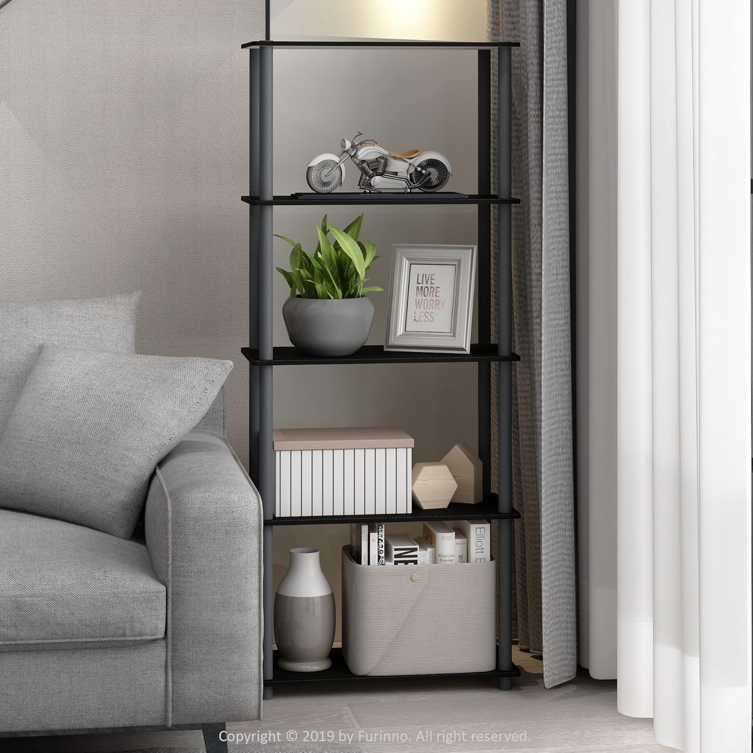 Furinno Turn-N-Tube 5-Tier Multipurpose Shelf / Display Rack / Storage Shelf / Bookshelf, Round Tubes, Black/Grey