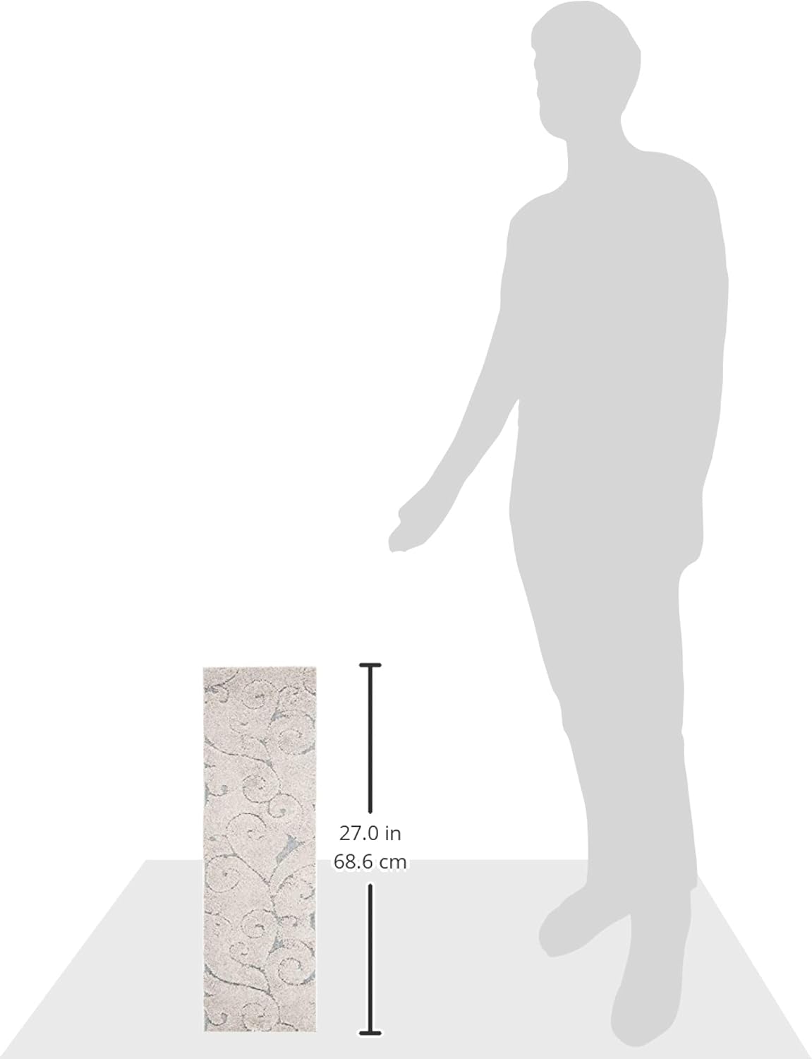 SAFAVIEH Florida Shag Collection Accent Rug - 2'3" x 5', Beige & Blue Grey, Scroll, Non-Shedding & Easy Care, 1.2-inch Thick Ideal for High Traffic Areas in Entryway, Living Room, Bedroom (SG455-1155)