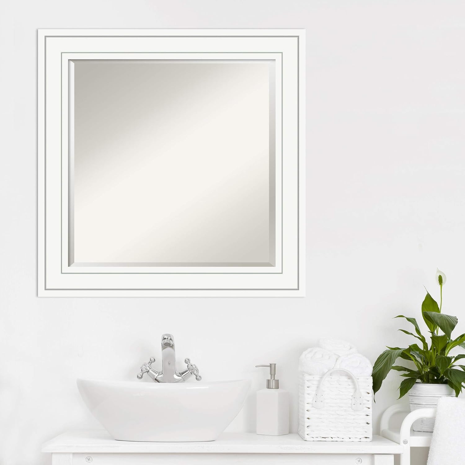Amanti Art White Bathroom Mirror for Over Sink, 25x25 Craftsman White Square Vanity Mirror, Medium Casual Wood Frame, Hangs Horizonally and Vertically, Bathroom Wall Decor, Beveled Edge from WI, USA
