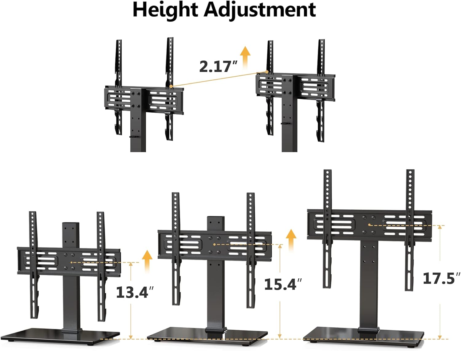 FITUEYES Universal TV Mount Stand Table Top TV Stand for 27-55 inch TVS Height Adjustable TV Stand Mount, Glass Base, Black
