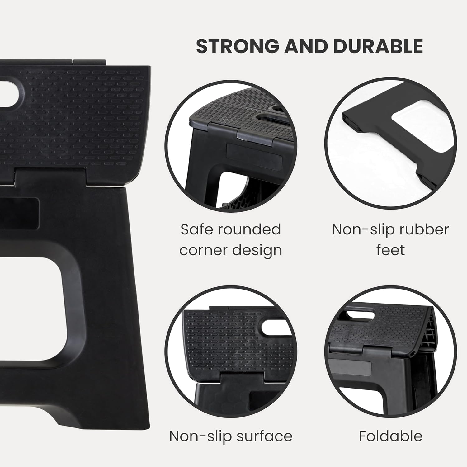 Vigar Compact Step Stool Foldable, 9-inch Step Stools for Adults up to 330 Pound, Lightweight Stool, Non-Slip Folding Step Stool, Black