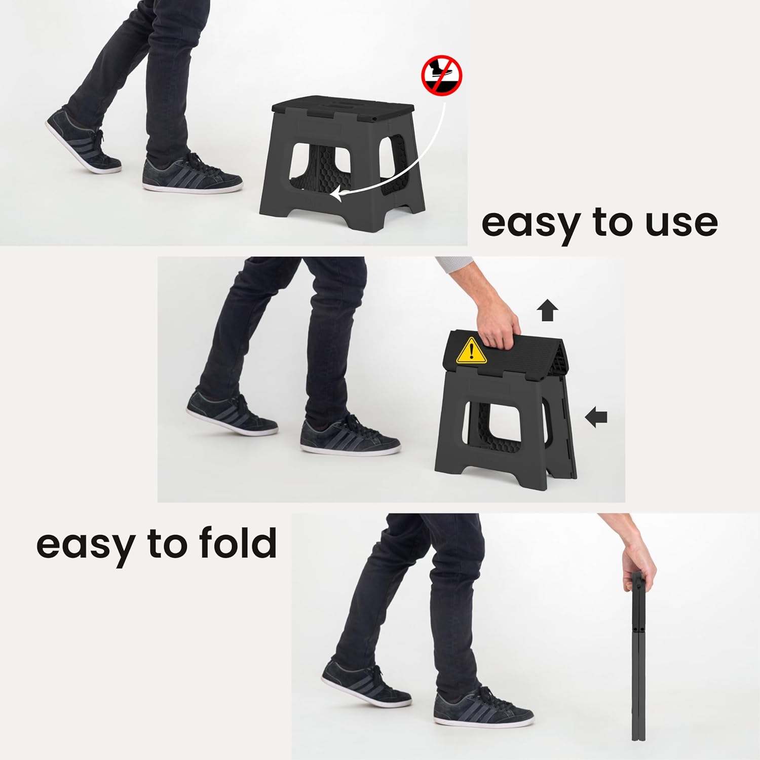 - Step Stool with Handle: The foldable stools for adults feature anti-slip grips, a durable textured base, and stabilizing rubber feet to prevent slipping. This ensures the foldable step stool stays securely in place and safe stepping stool for adults.
