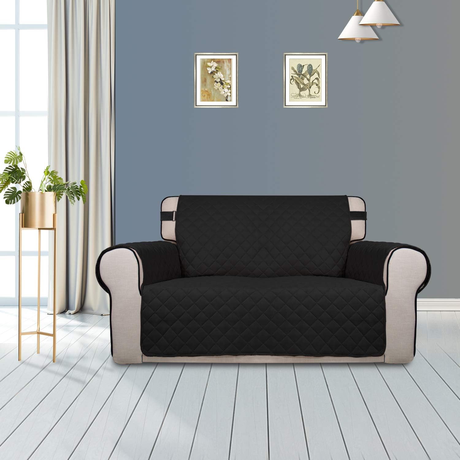 PureFit Reversible Sofa Cover Water Resistant Loveseat Couch Cover, Machine Washable Furniture Cover with Non-Slip Foam and Adjustable Strap for Dogs, Pets (Loveseat, Black/Beige)