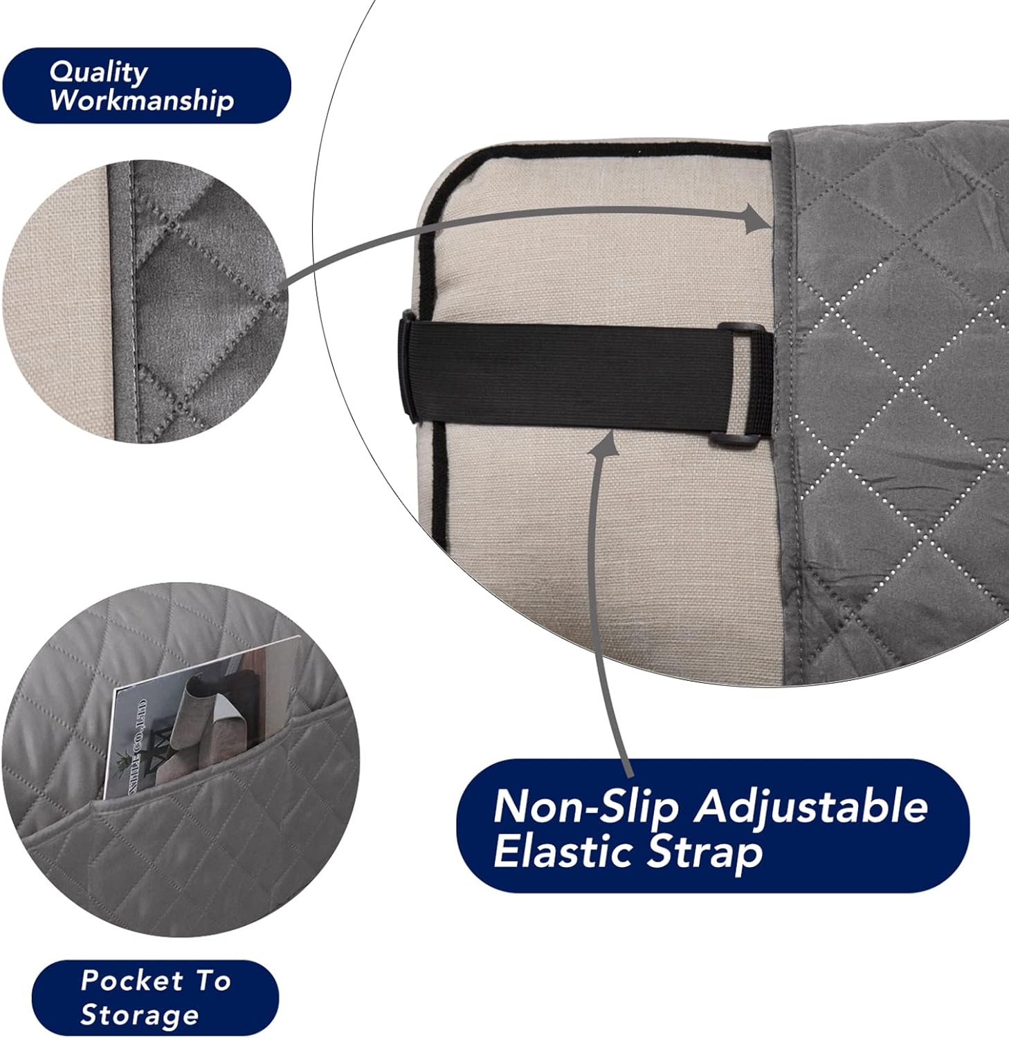 - SUPER DURABLE REVERSIBLE FABRIC: Quilted from tear-resistant Microfiber fabric (polyester composition), this durable furniture cover is composed of 3 layers with thick poly foam filling. Our sofa cover is designed and ready-made to fit chair sizes with seat width up to 23".