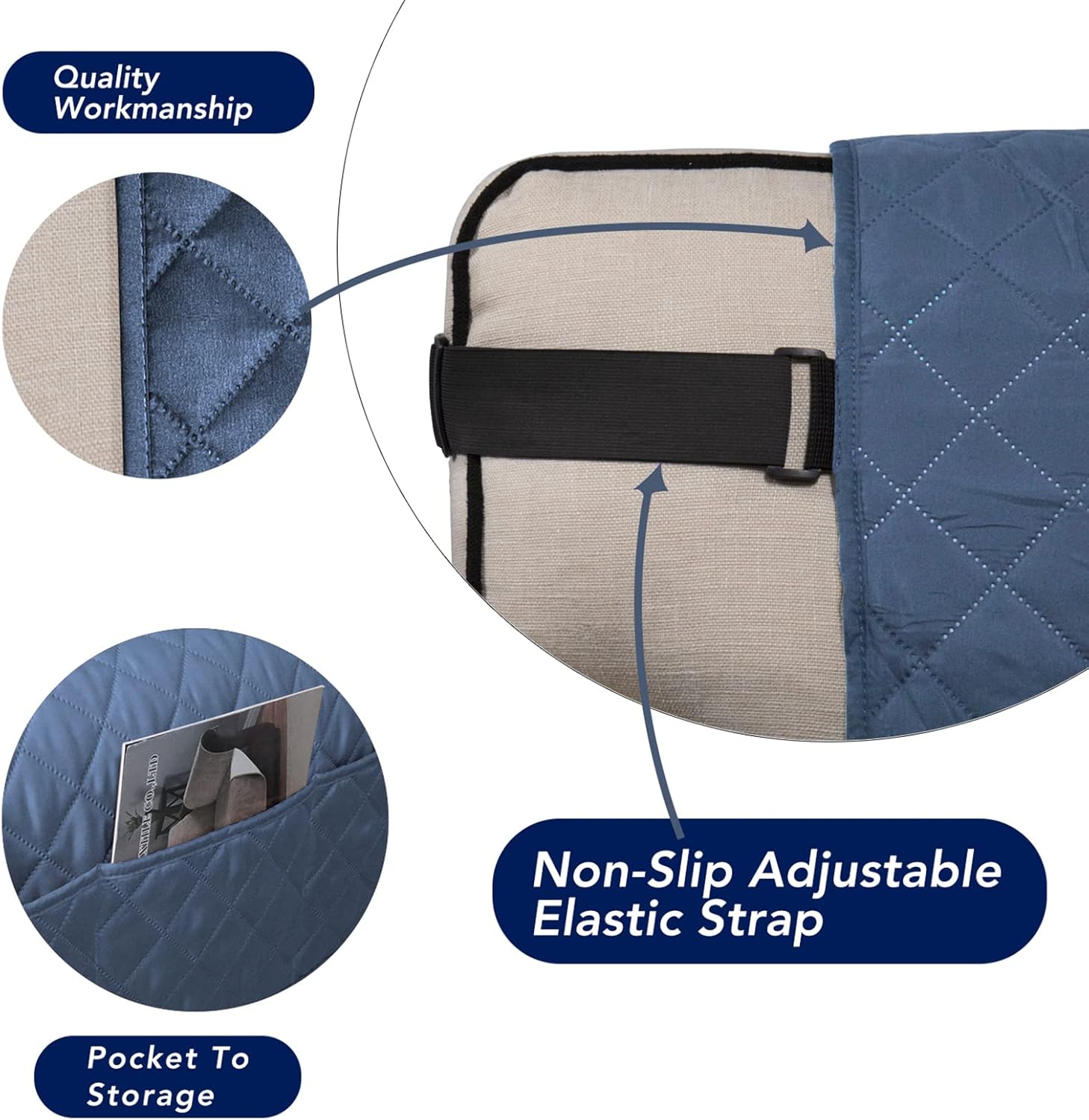 - EASY TO INSTALL: You can do it by yourself, drape your furniture with the cover, put excess fabric into the gap and insert the non-slip foam anchors between the back and sitting cushions for a seamless look, attach and adjust the back strap. Please refer to installation instruction to make sure a nice fit.