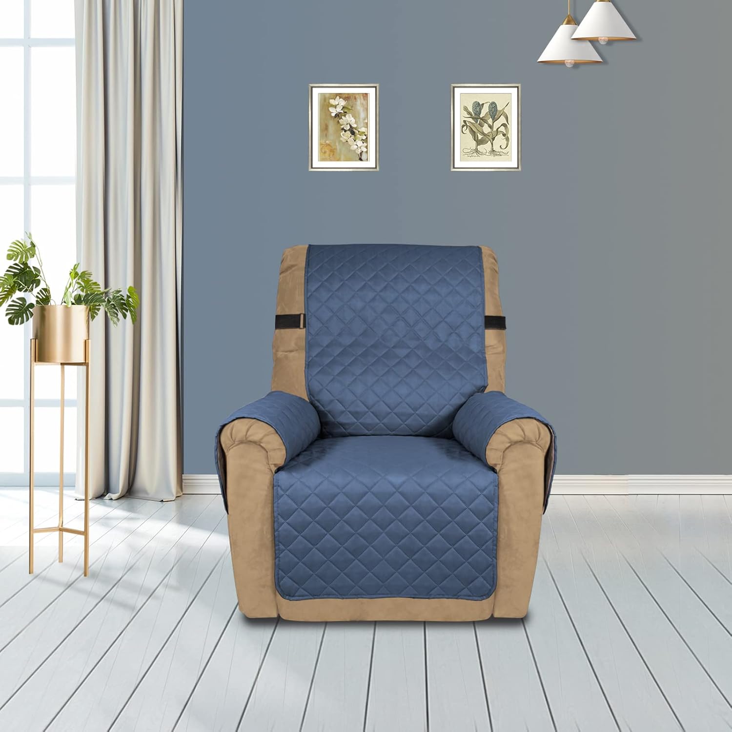 PureFit Reversible Sofa Cover Water Resistant Recliner Couch Cover, Machine Washable Furniture Cover with Adjustable Strap for Dogs, Pets (Recliner, Dark Blue/Light Blue)
