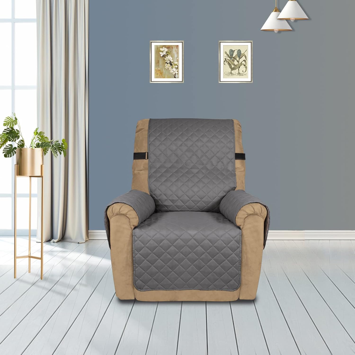 PureFit Reversible Sofa Cover Water Resistant Recliner Couch Cover, Machine Washable Furniture Cover with Adjustable Strap for Dogs, Pets (Recliner, Gray/Light Gray)