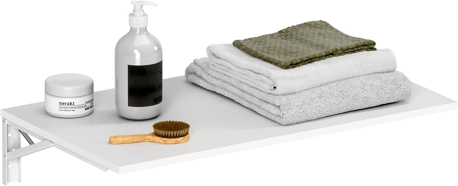 - ★SPACE-SAVING DESIGN - Fold up to use, down to store .Fold down to the wall using a simple fingertip release mechanism,You see the beautiful ivory white color surface instead of the hardware.