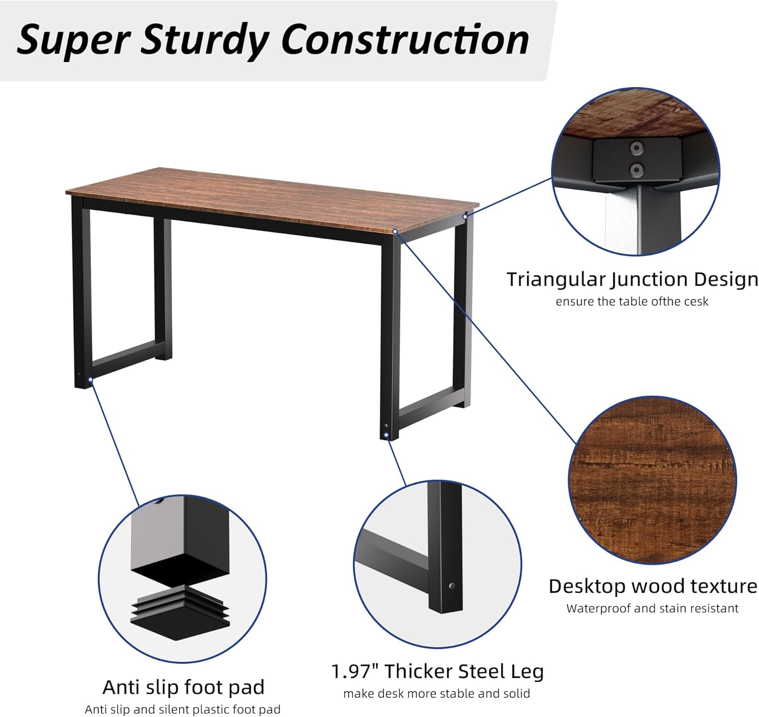 - Durable and Sturdy: The computer desk frame is made of sturdy steel with two leg bars on either side to ensure stability and durability.1.57" by 1.57" width of legs are strong enough to support heavy articles. The triangular junction design makes the frame sturdier. The frame and all legs are anti rust.