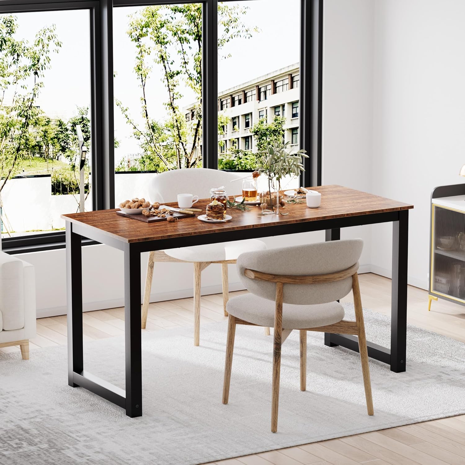 Decoholic 55 Inch Computer Desk, Home & Office PC Laptop Study Writing Table Workstation with Leg Bars, Modern Simple Industrial Style, Rustic Brown