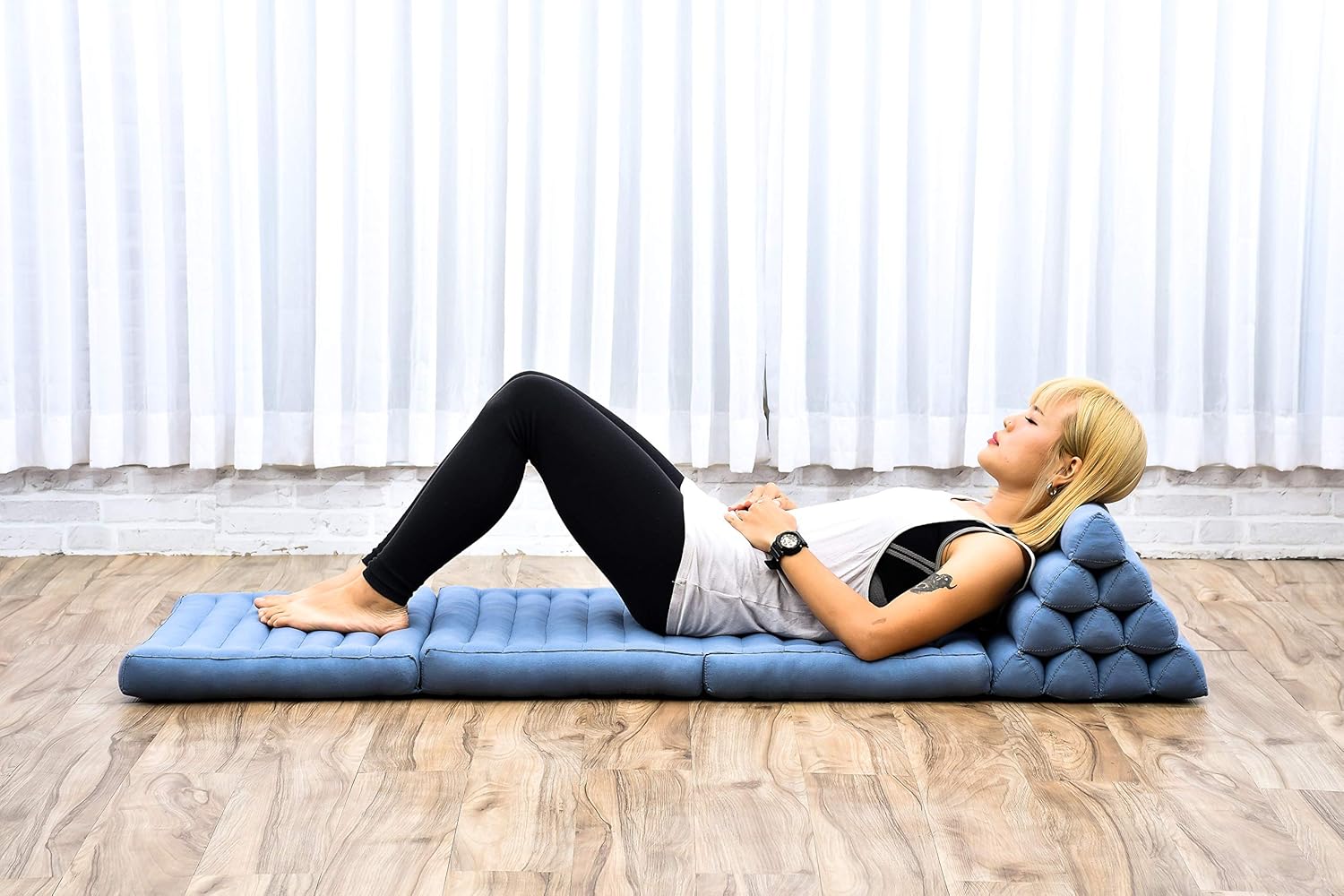 - Trifold Mat with integrated Thai triangle pillow. Ideal for reading, watching TV, gaming, or as a daybed. This floor pillow lounger doubles as a Japanese futon floor mattress or thai massage mat