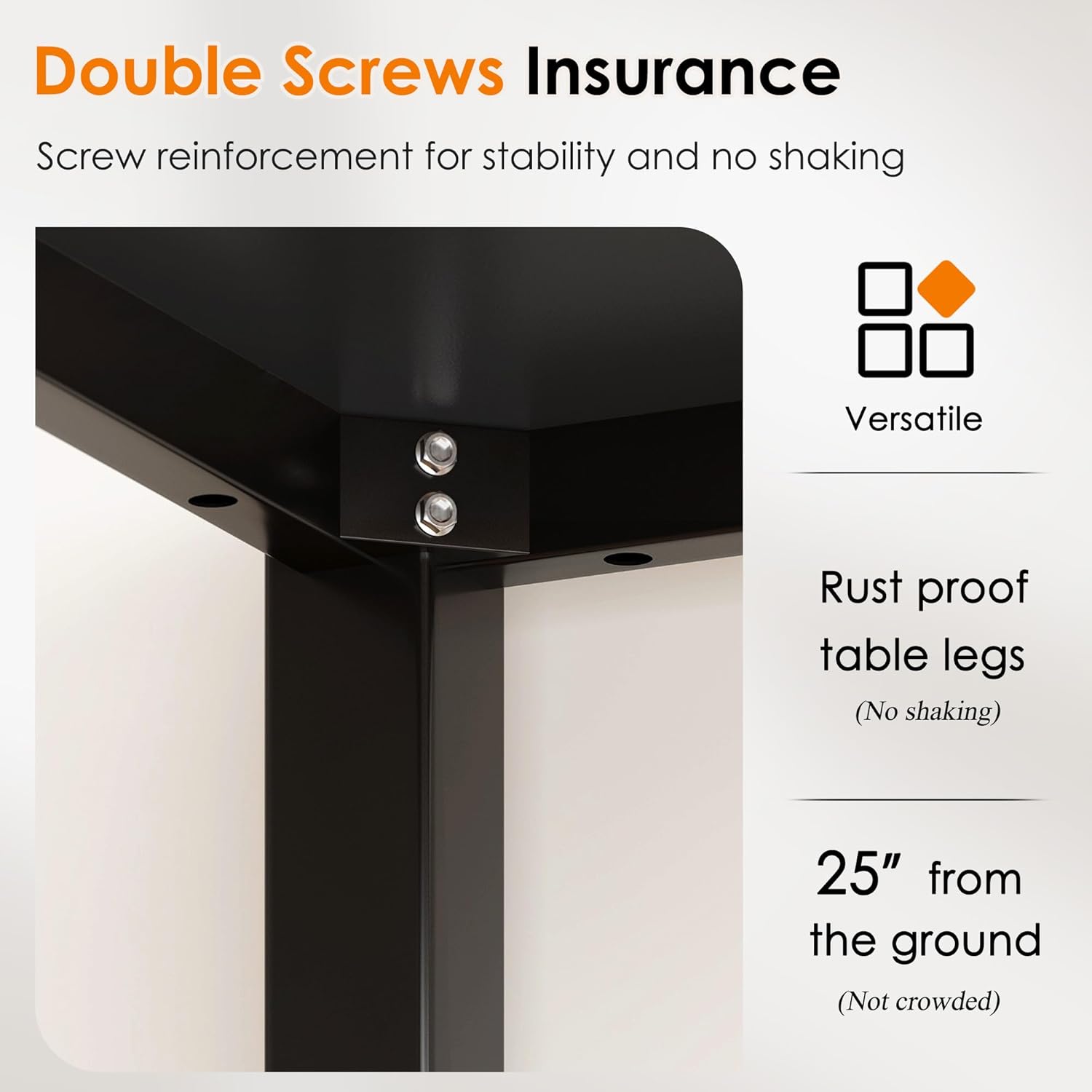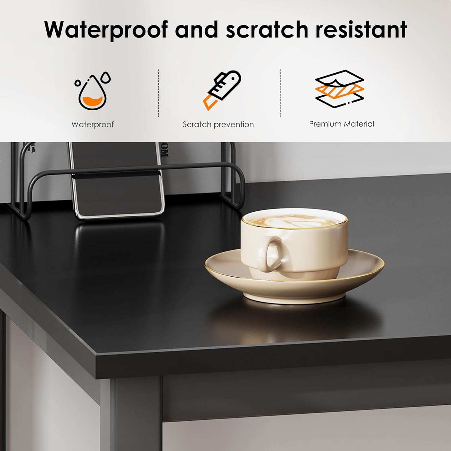 - 【Durable & Stable】: The panel is made of E1 grade particle wood with high glossy finish and very smooth, safe and comfortable to use. Desk frame utilizes heavy-duty and powder-coated metal materials, which ensures stability and durability.