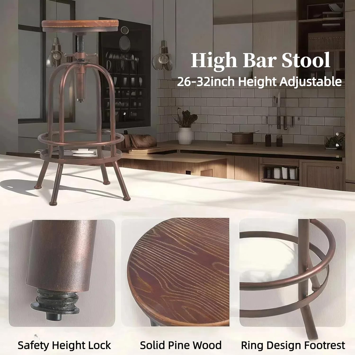 - ✔ Extra Tall Bar Height.360 degree swivel from 26” up to 32.3” to meet your needs. Easily adjust stool height just by spin the seat to meet counter height. No matter at your kitchen island, kitchen counter or pub height dining table.