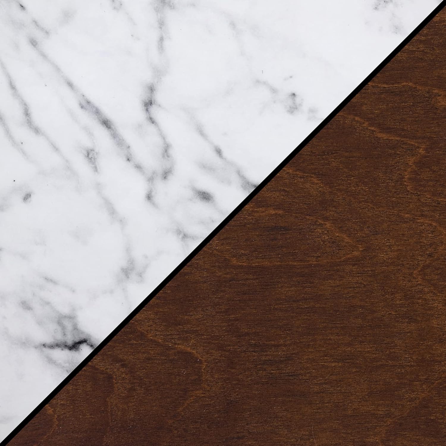 Convenience Concepts American Heritage Round End Table, White Faux Marble / Espresso