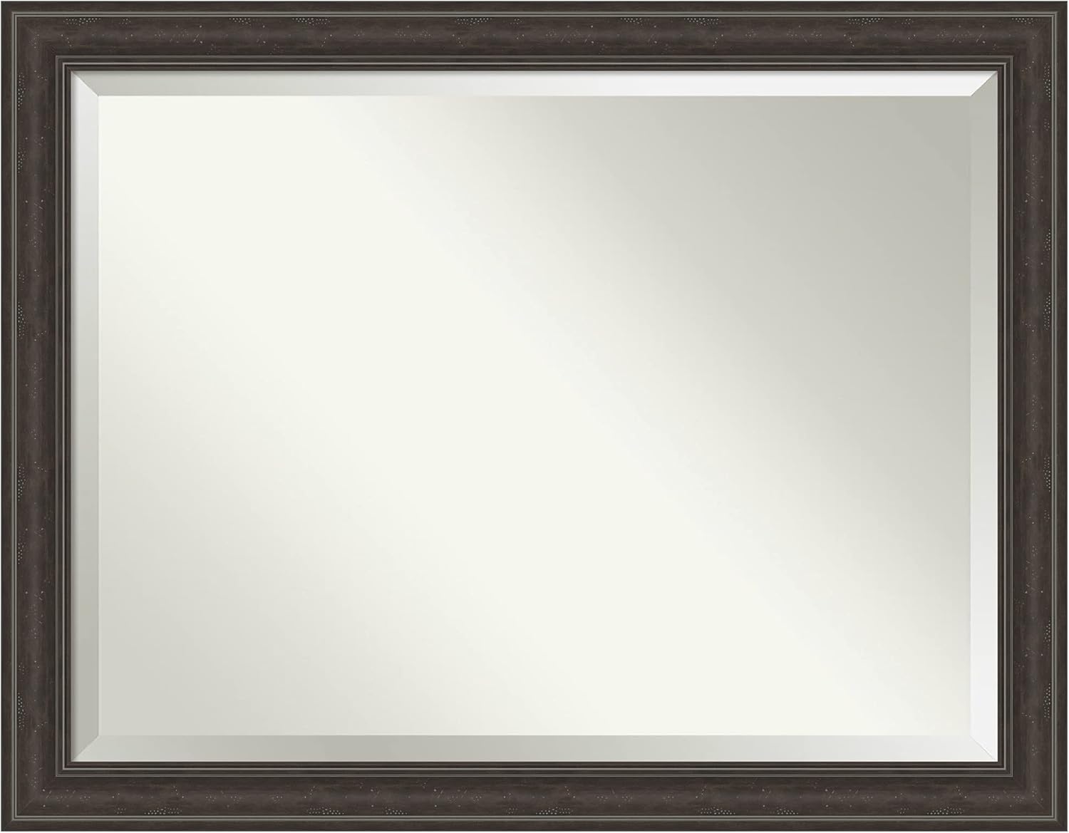 Amanti Art Brown Bathroom Mirror for Over Sink, 36x46 Shipwreck Greywash Rectangle Vanity Mirror, X-Large Traditional Frame, Hangs Horizonally and Vertically, Bathroom Wall Decor, Beveled Edge