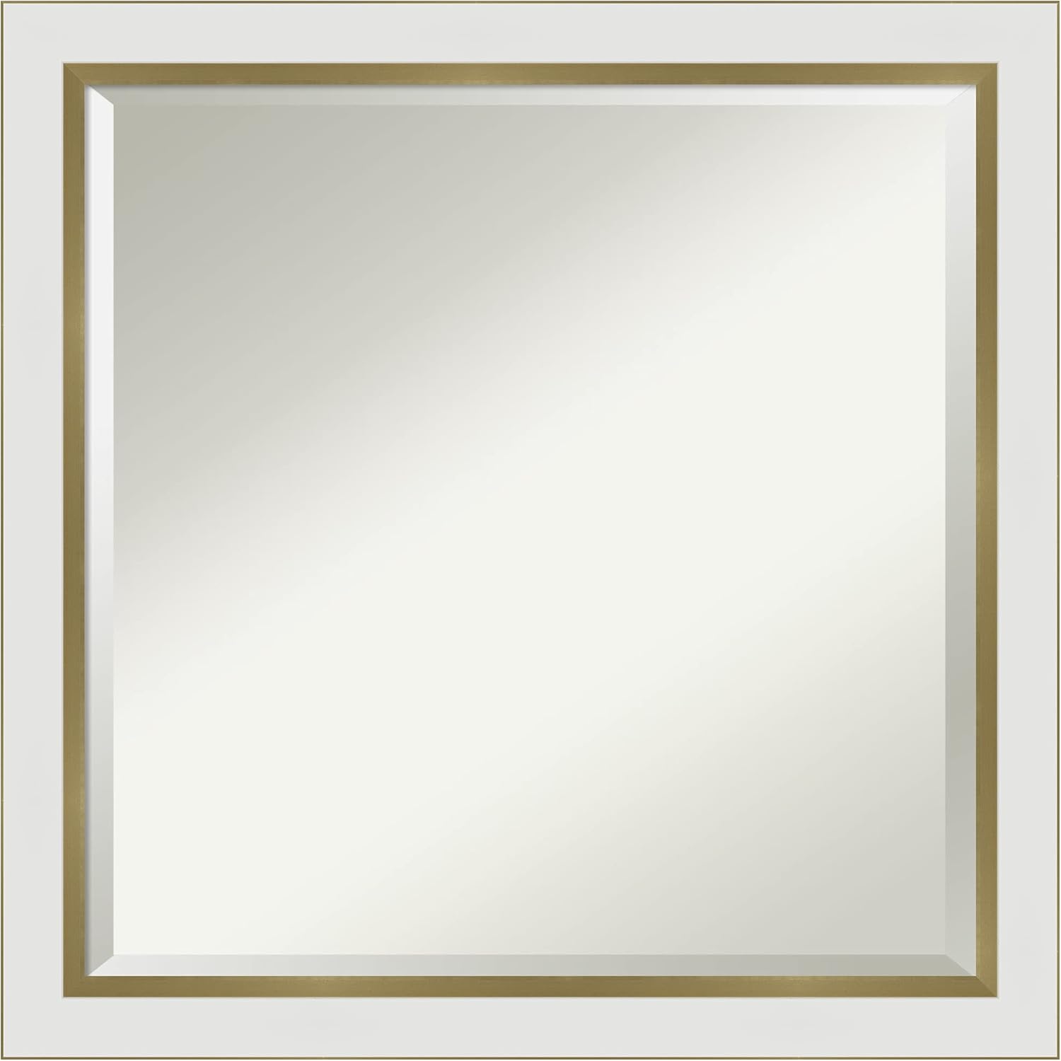 Amanti Art White Bathroom Mirror for Over Sink, 23x23 Eva White Gold Narrow Square Vanity Mirror, Medium Modern Contemporary Frame, Hangs Horizonally and Vertically, Bathroom Wall Decor, Beveled Edge