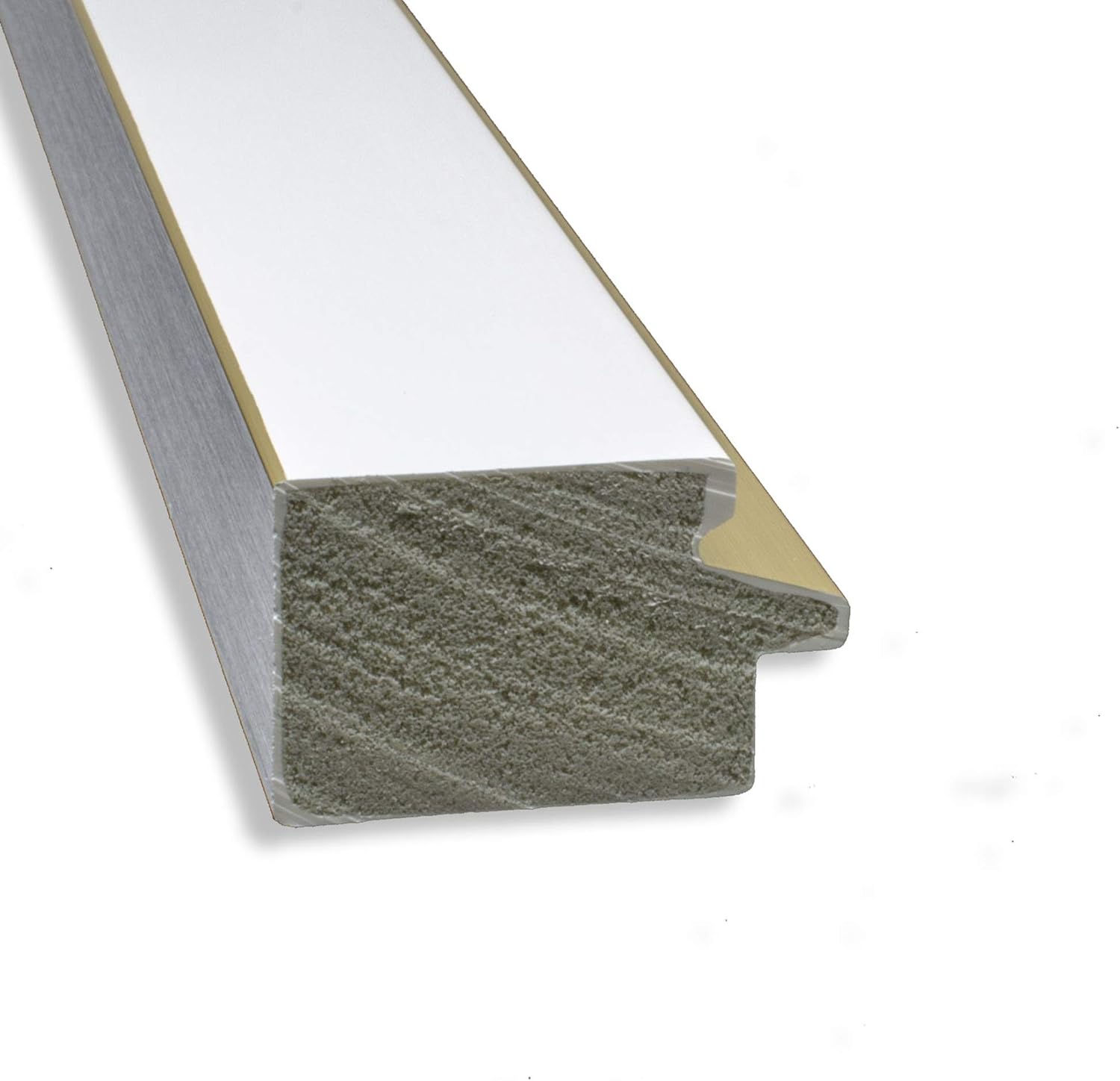- FRAME DETAILS: The Eva White Gold Narrow Frame is a smooth matte white, flat frame with a polished gold edge and recessed inner lip. The frame is 1.75 in. wide and stands 1.25 in. off the wall.