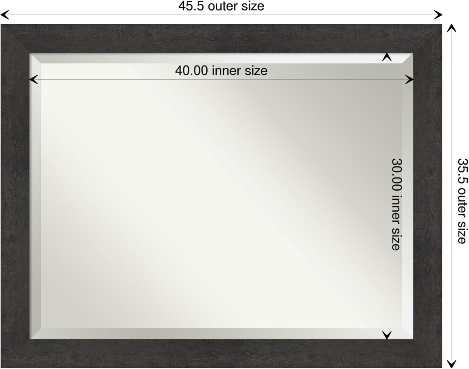 - MIRROR DETAILS: This mirror features premium glass for a clear, undistorted image and is finished with a beveled edge to give the glass a decorative touch. The overall size of this bathroom mirror measures 45.5 x 35.5 inches, including the frame. Its reflective area measures 40 x 30 inches.