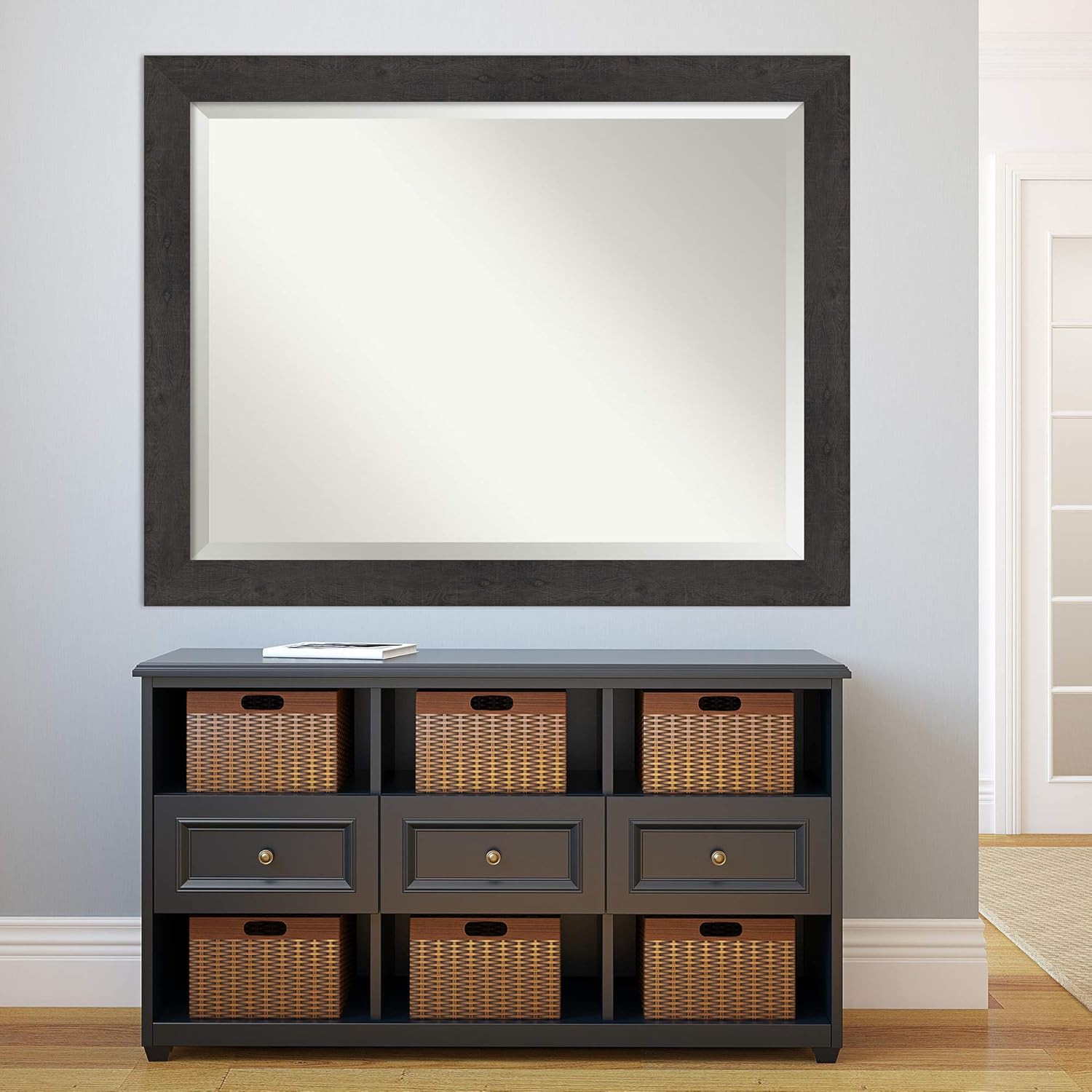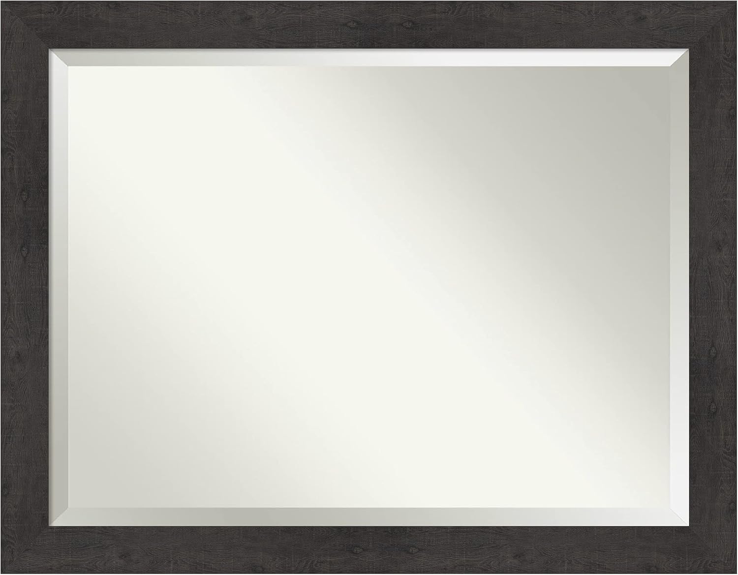 Amanti Art Brown Bathroom Mirror for Over Sink, 36x46 Rustic Plank Espresso Rectangle Vanity Mirror, X-Large Rustic Farmhouse Frame, Hangs Horizonally and Vertically, Bathroom Wall Decor, Beveled Edge