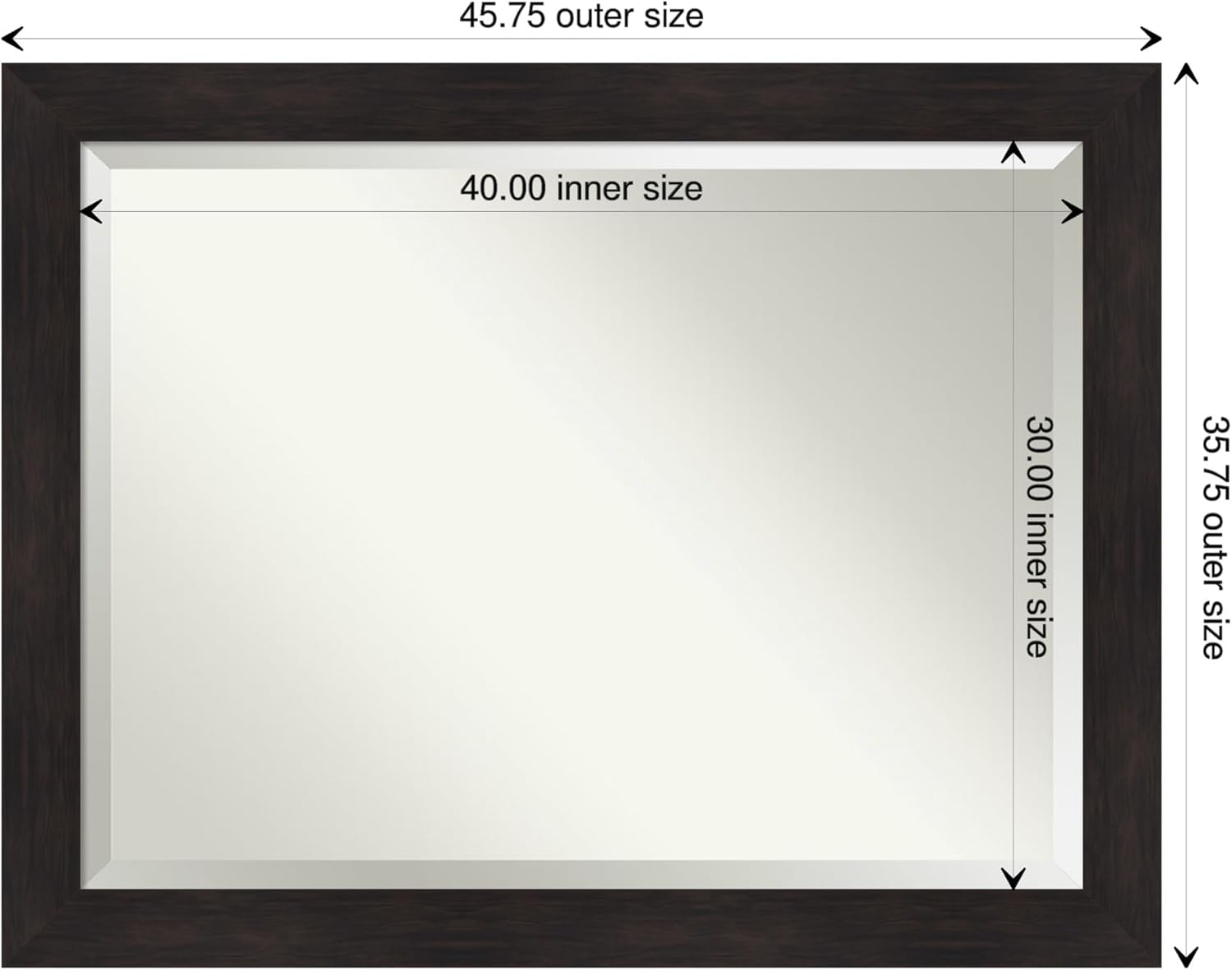 Amanti Art Brown Bathroom Mirror for Over Sink, 36x46 Furniture Espresso Rectangle Vanity Mirror, X-Large Casual Frame, Hangs Horizonally and Vertically, Bathroom Wall Decor, Beveled Edge from WI, USA
