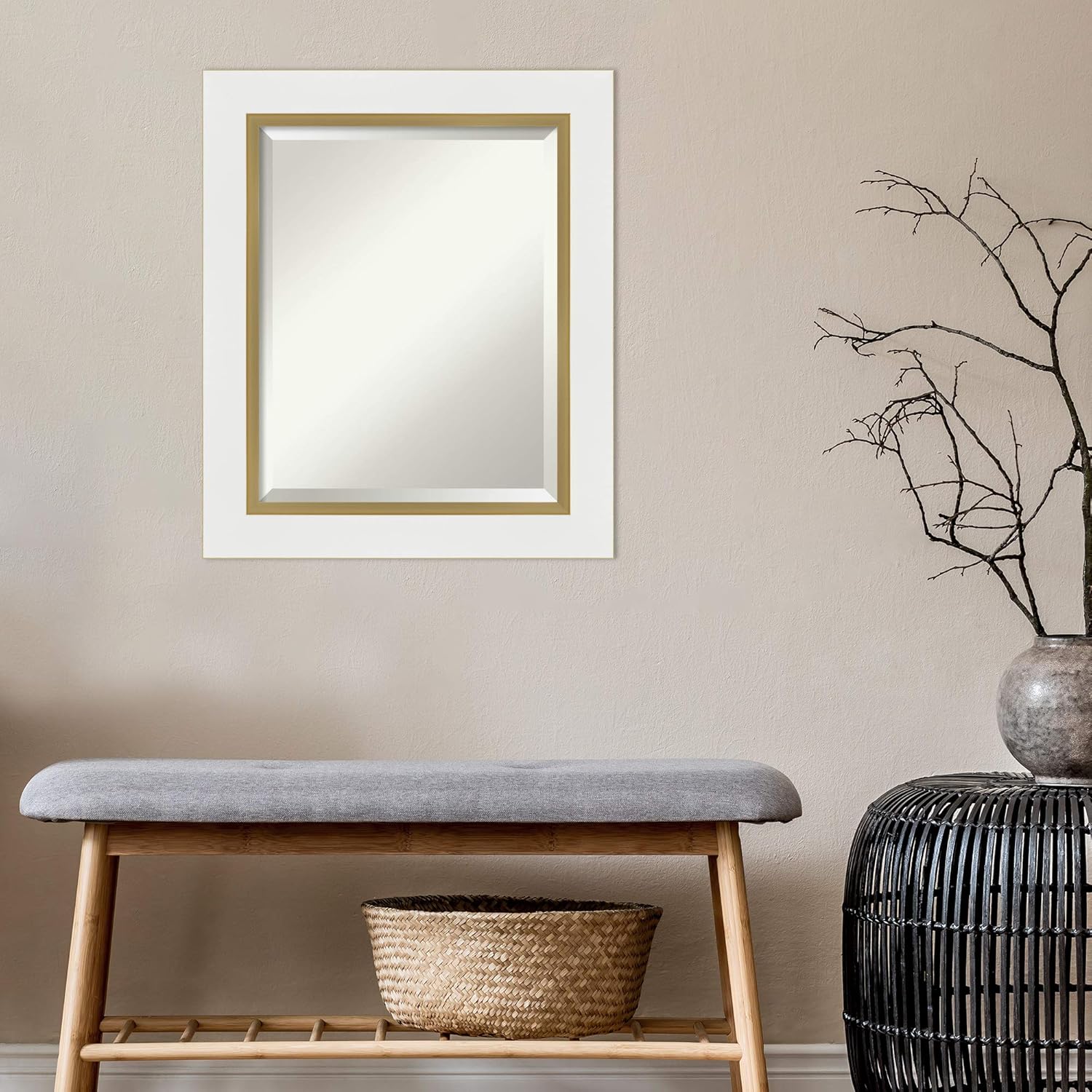 Amanti Art White Bathroom Mirror for Over Sink, 25x21 Eva White Gold Rectangle Vanity Mirror, Small Modern Contemporary Frame, Hangs Horizonally and Vertically, Bathroom Wall Decor, Beveled Edge