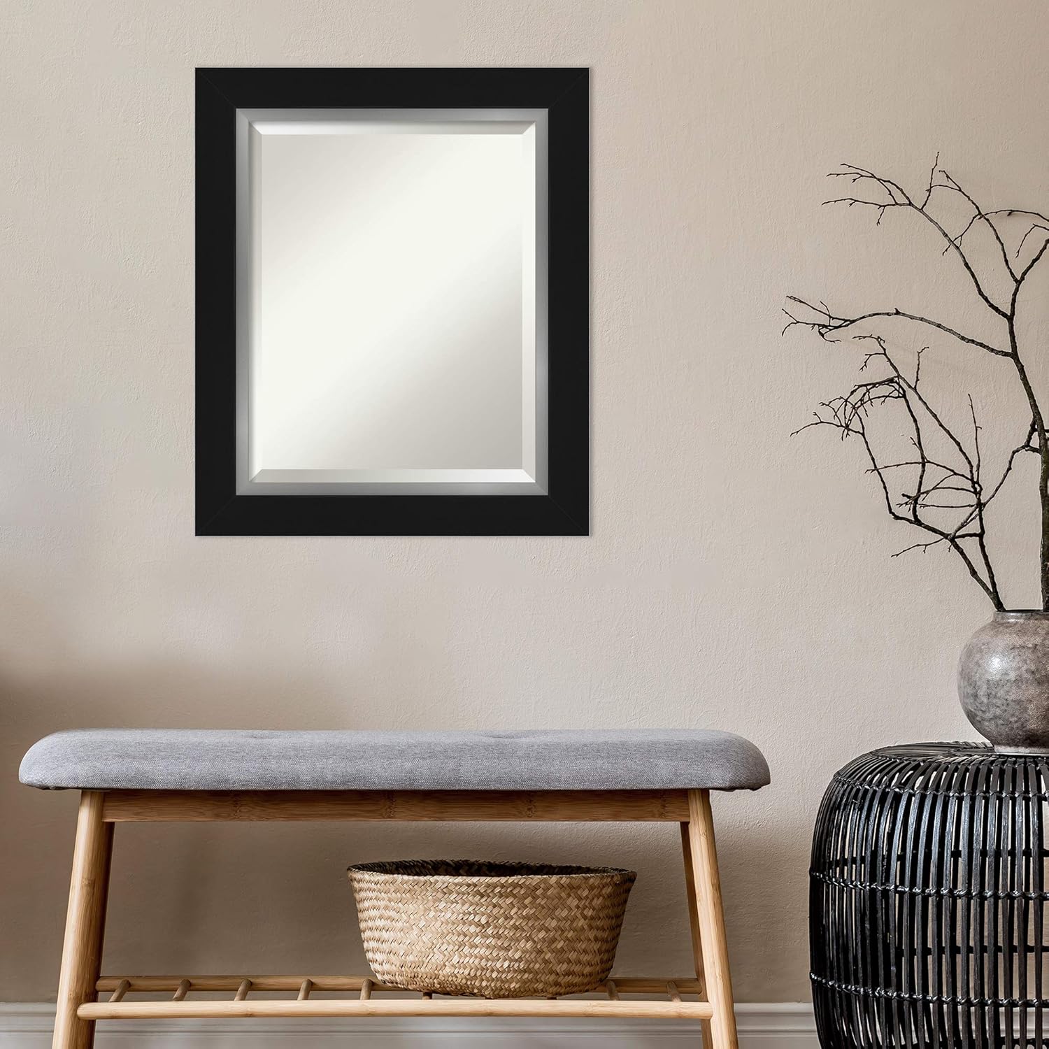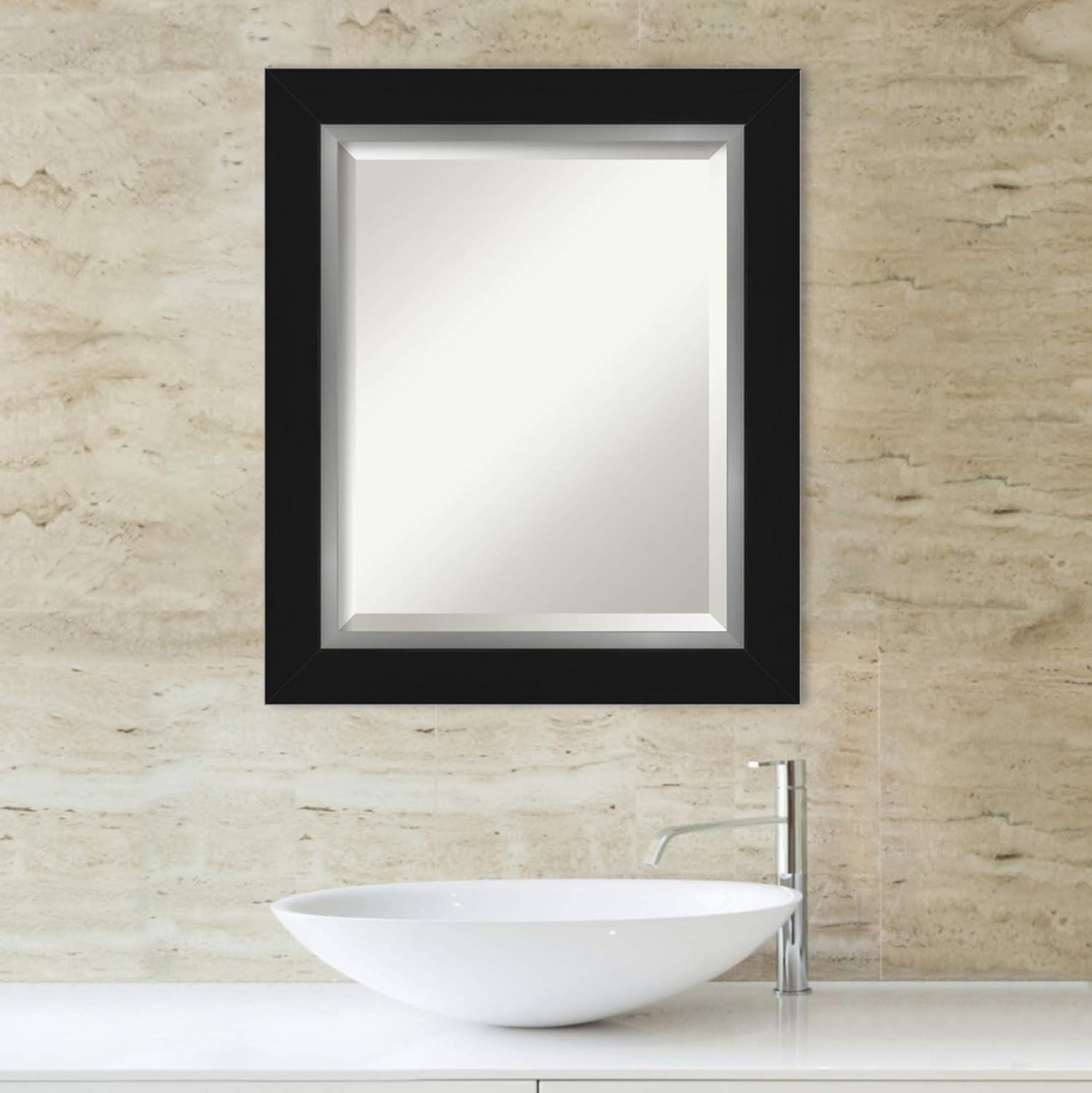 Amanti Art Black Bathroom Mirror for Over Sink, 26x22 Eva Black Silver Rectangle Vanity Mirror, Small Modern Contemporary Frame, Hangs Horizonally and Vertically, Bathroom Wall Decor, Beveled Edge