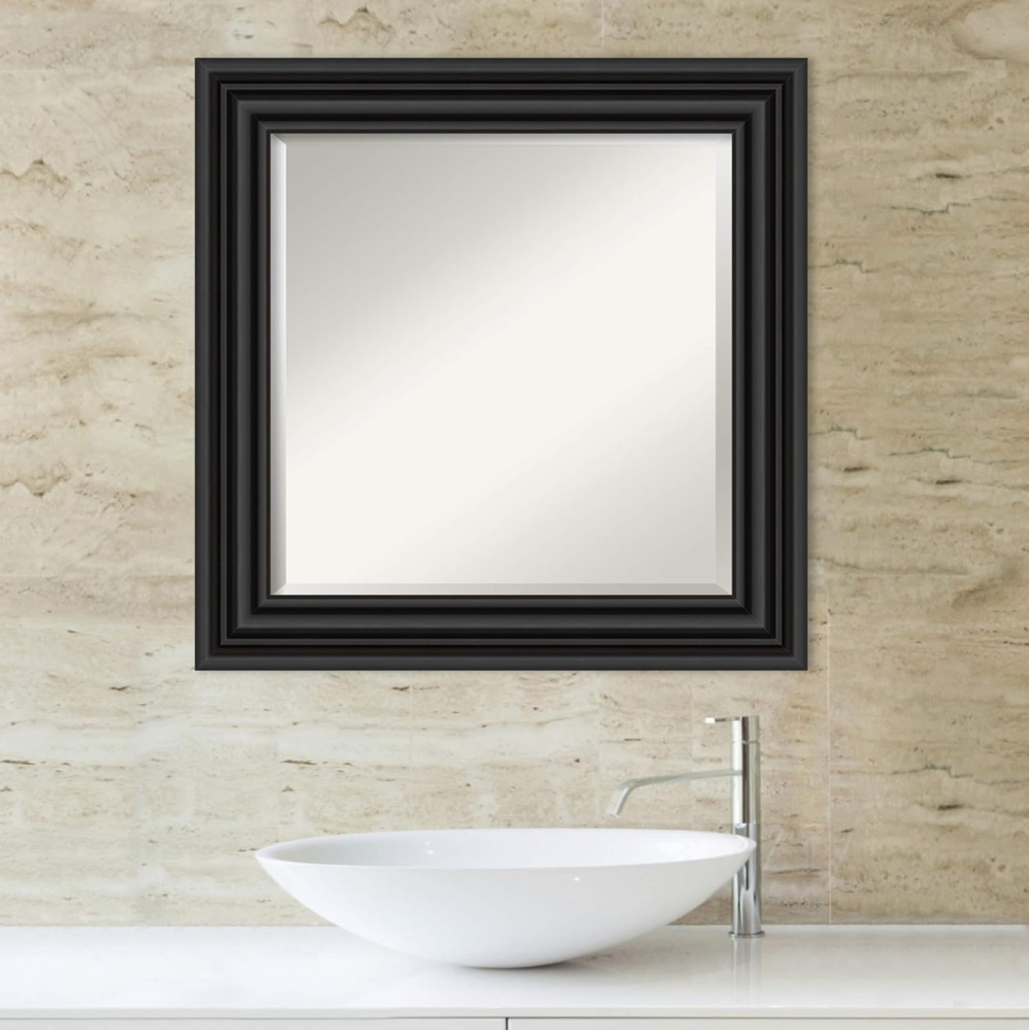 Amanti Art Black Bathroom Mirror for Over Sink, 26x26 Colonial Black Square Vanity Mirror, Medium Traditional Frame, Hangs Horizonally and Vertically, Bathroom Wall Decor, Beveled Edge