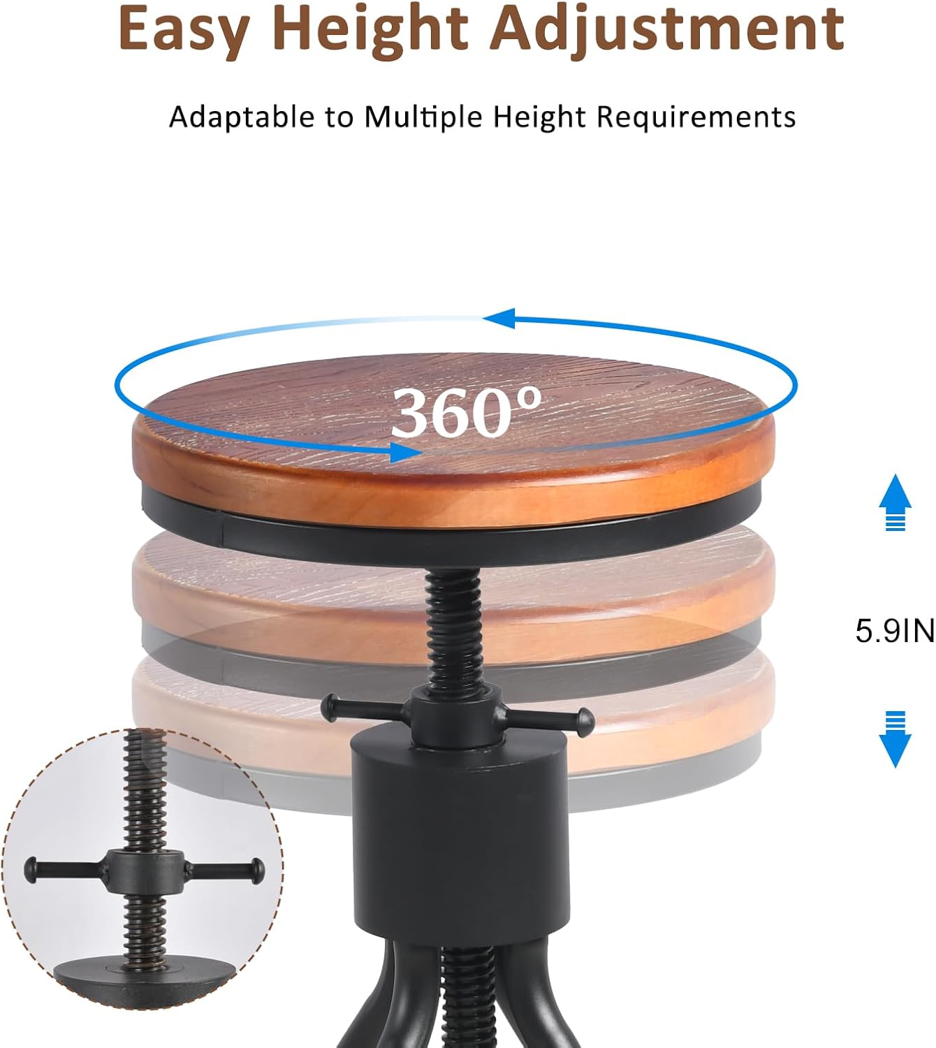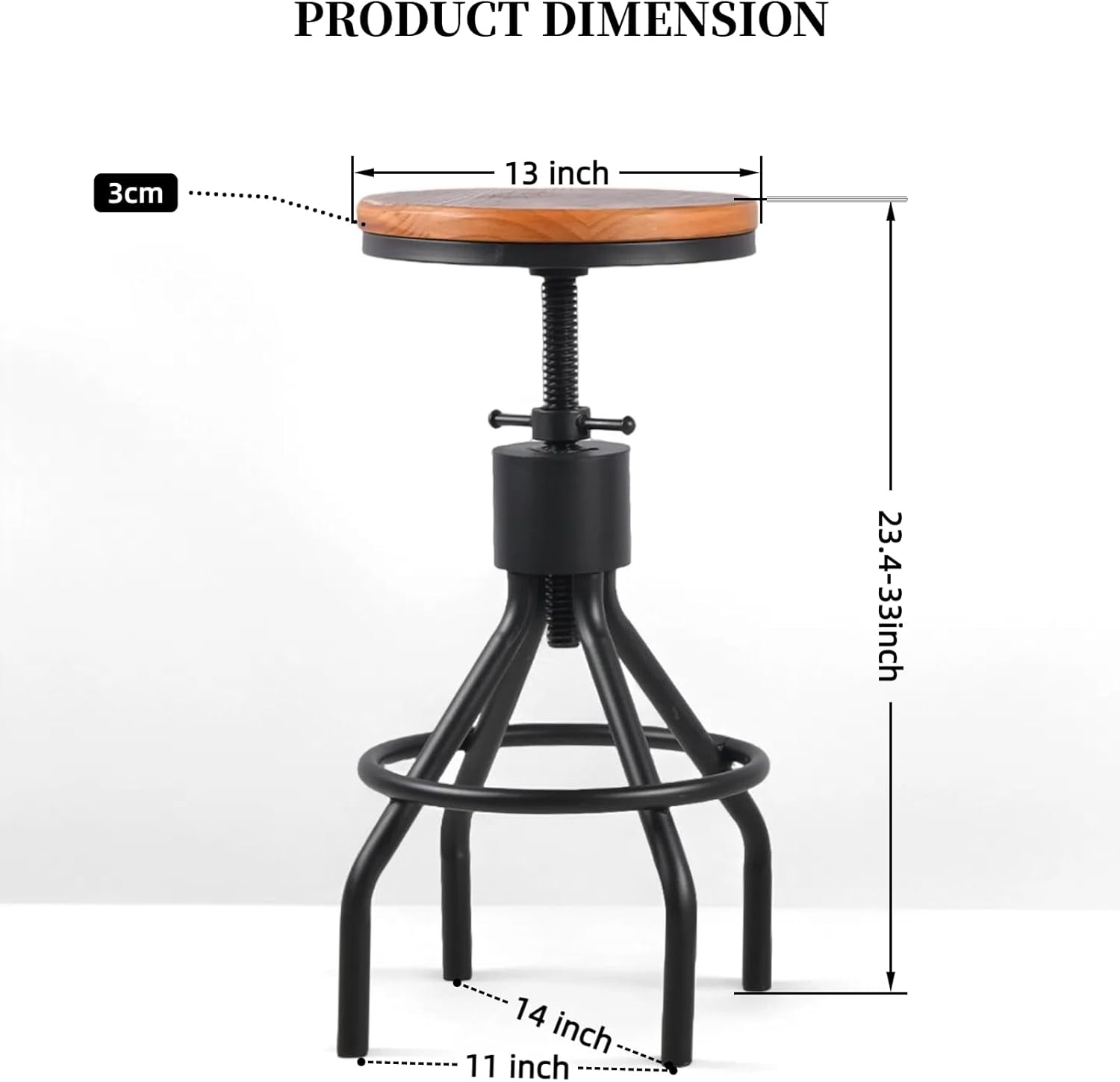 - [Dimension] Height of Bar Stool: 23-33inch; Diameter of Wooden Seat: 13inch; Thickness of Wooden Seat: 1.2inch; Height from floor to top of footrest: 9.5inch. Max capacity: 150kg/330lbs.