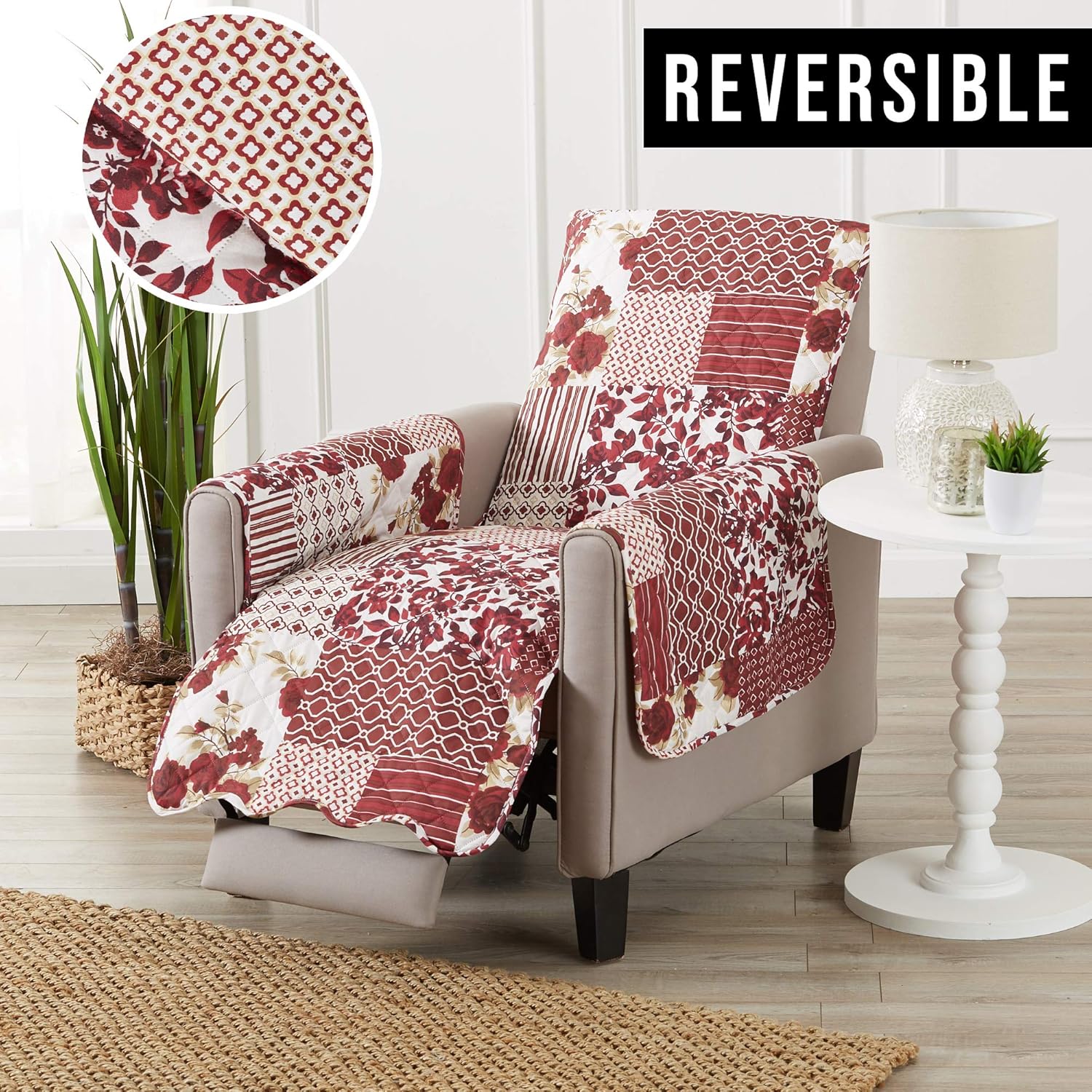 Great Bay Home Patchwork Scalloped Printed Furniture Protector Stain Resistant Recliner Cover (Recliner, Burgundy)