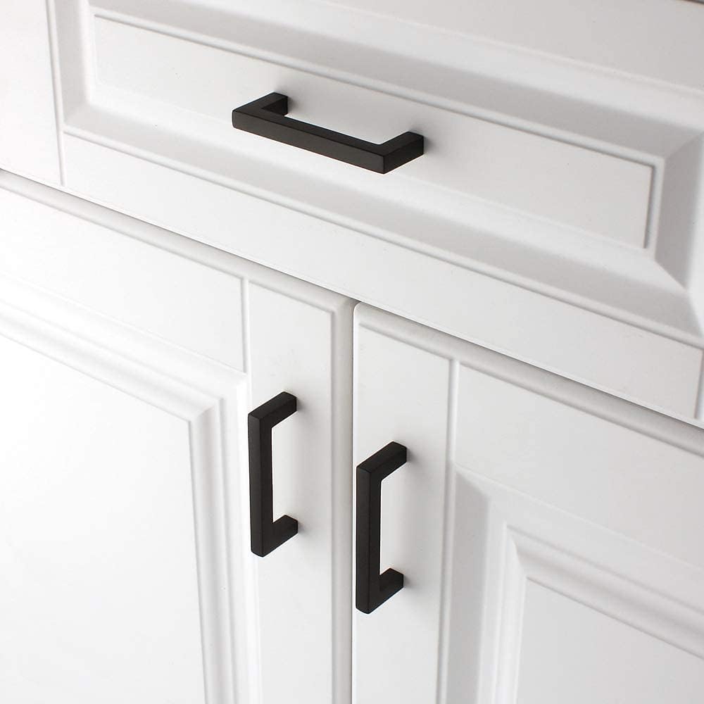 KOOFIZO Solid Square Bar Cabinet Handle - Black Furniture Pull, 3 Inch/76mm Screwhole Distance, 10-Pack for Kitchen Cupboard Door, Bedroom Dresser Drawer, Bathroom Wardrobe Hardware