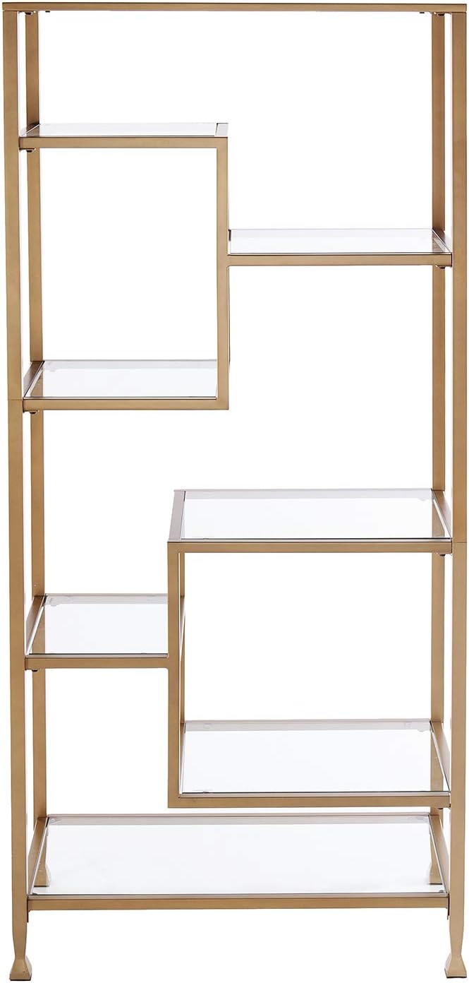 SEI Furniture Jaymes Metal/Glass Asymmetrical Étagère/Bookcase, Gold